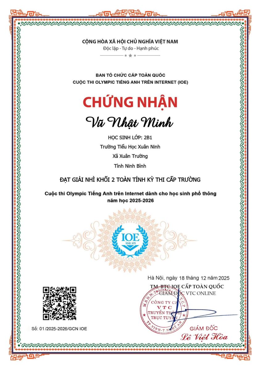 Chúc mừng các tài năng nhí của trường TH Xuân Ninh đã có thành tích đáng tự hào trong cuộc thi Violympic Tiếng Anh