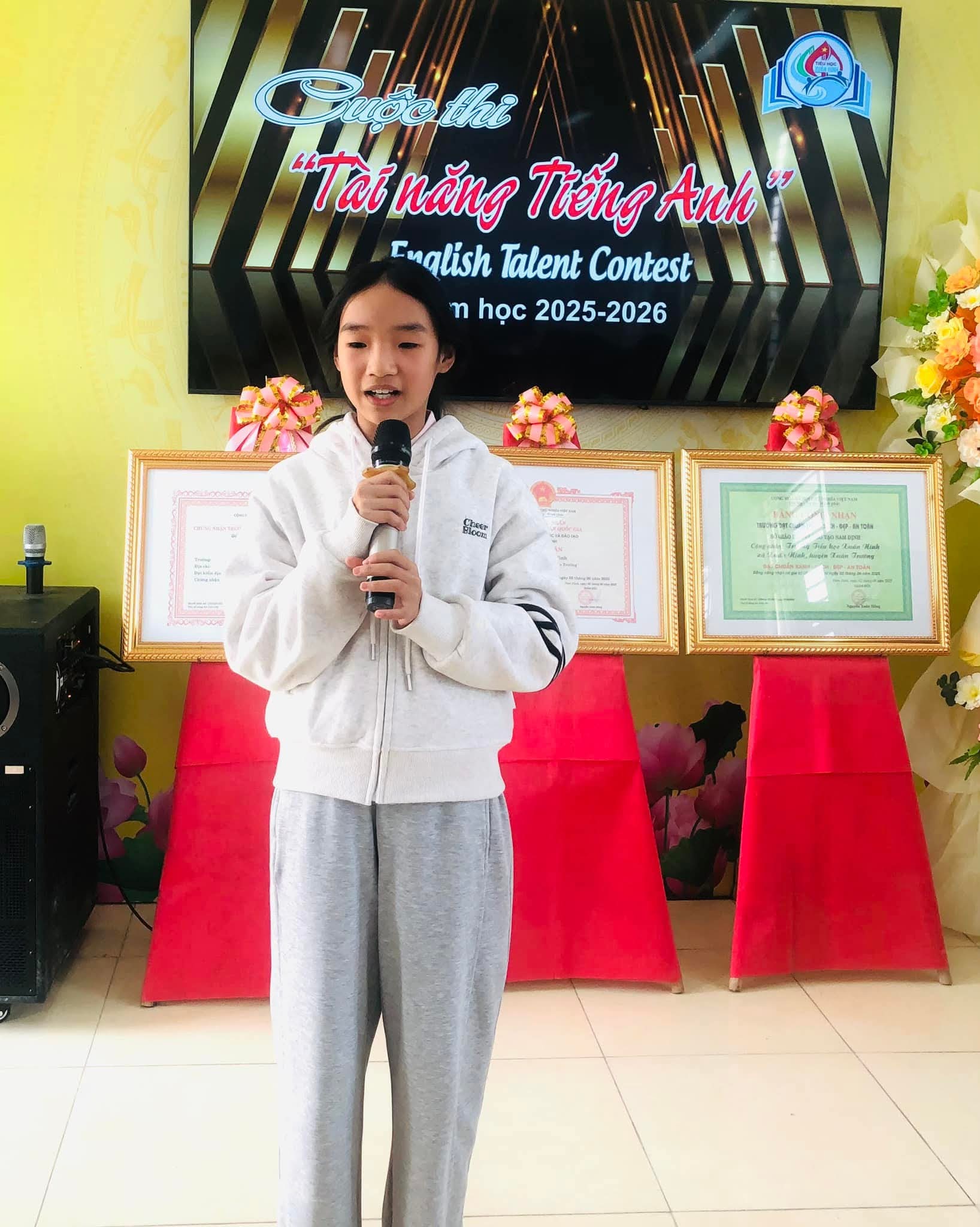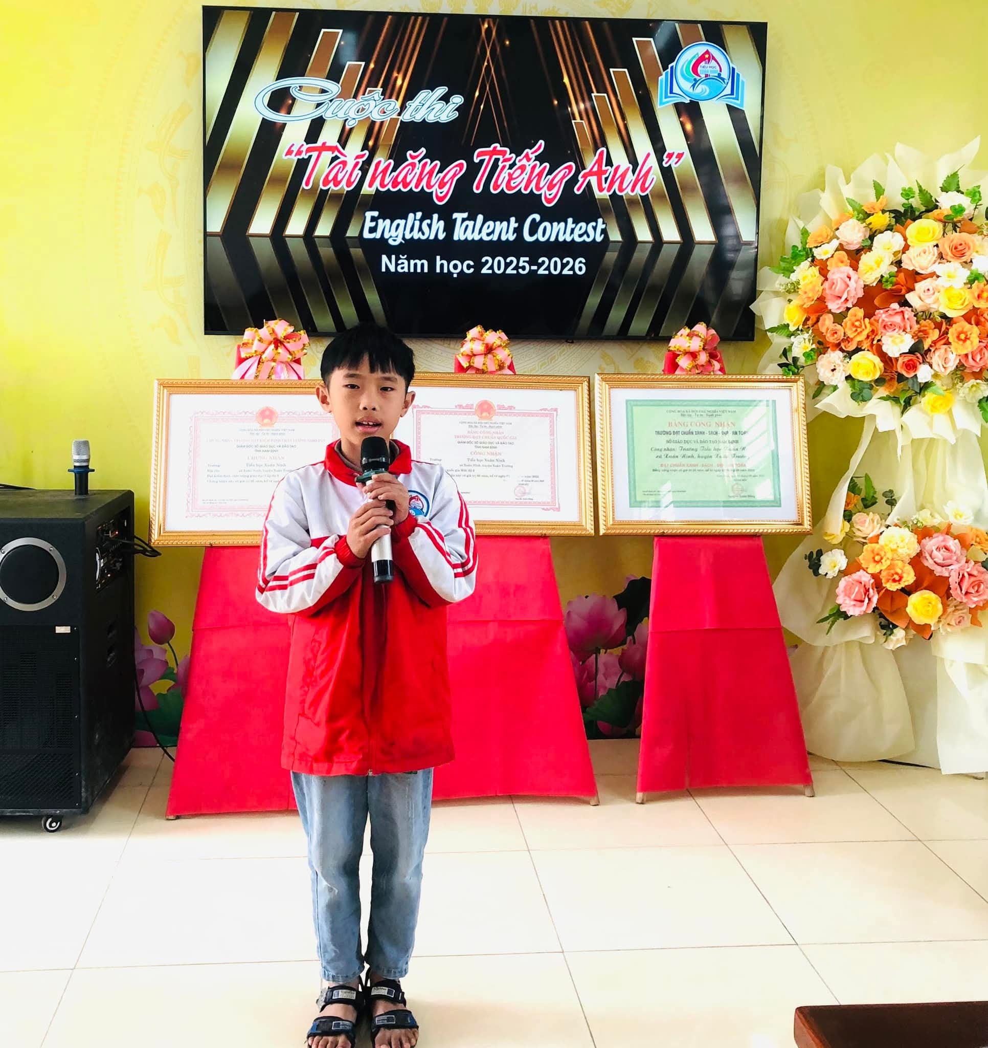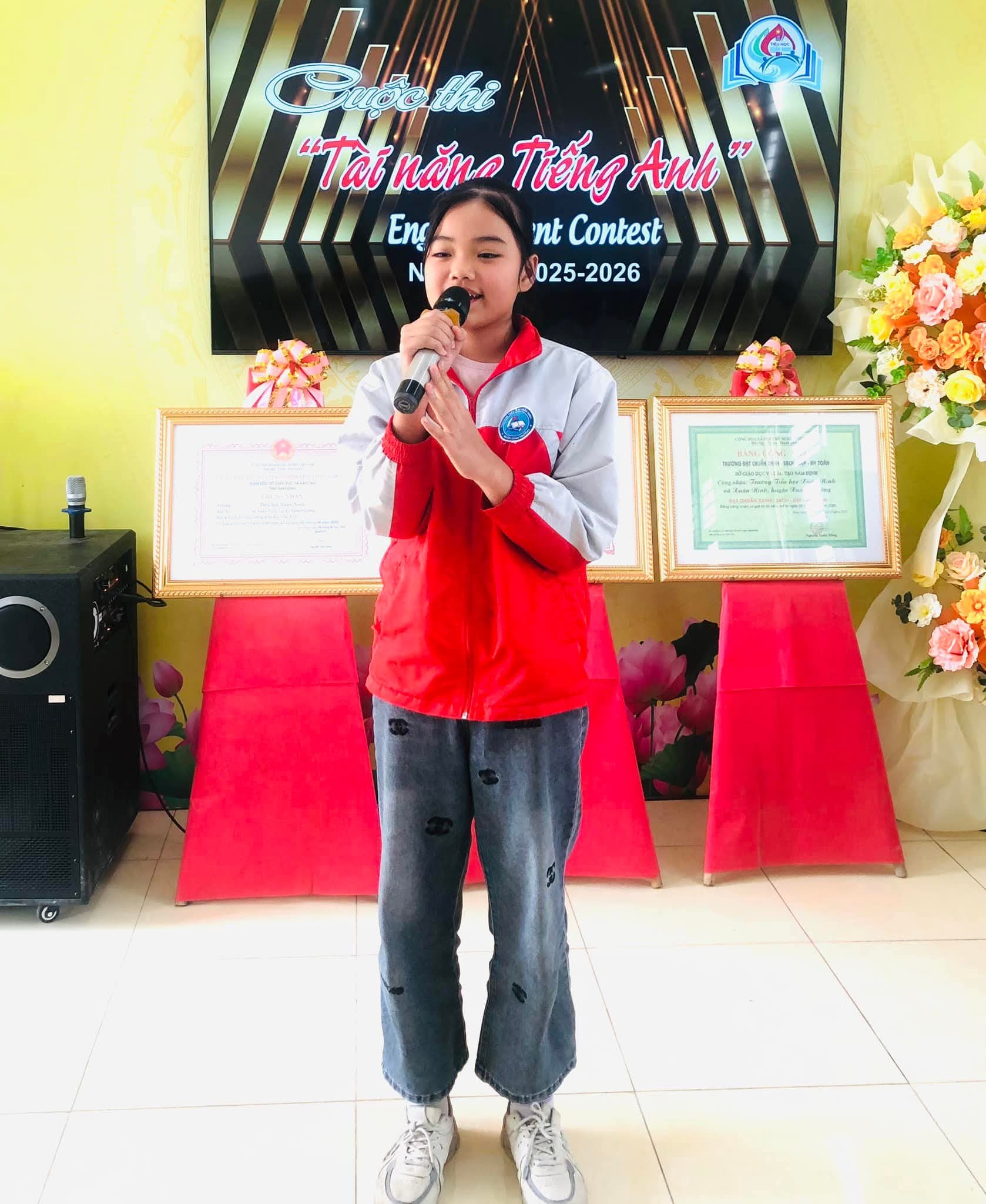 🎤 Tại vòng sơ khảo, 25 gương mặt xuất sắc đến từ các khối lớp 2, 3, 4, 5 đã mang đến những màn trình diễn vô cùng ấn tượng. Mỗi thí sinh là một màu sắc riêng, tự tin bước lên sân khấu để thuyết trình về chủ đề mình yêu thích. Từ những câu chuyện cảm động về gia đình, mái trường đến những góc nhìn thú vị về sở thích cá nhân, các em đã chứng minh rằng: Tiếng Anh không chỉ là một môn học, mà là nhịp cầu để các em tự tin kết nối và thể hiện bản thân.
