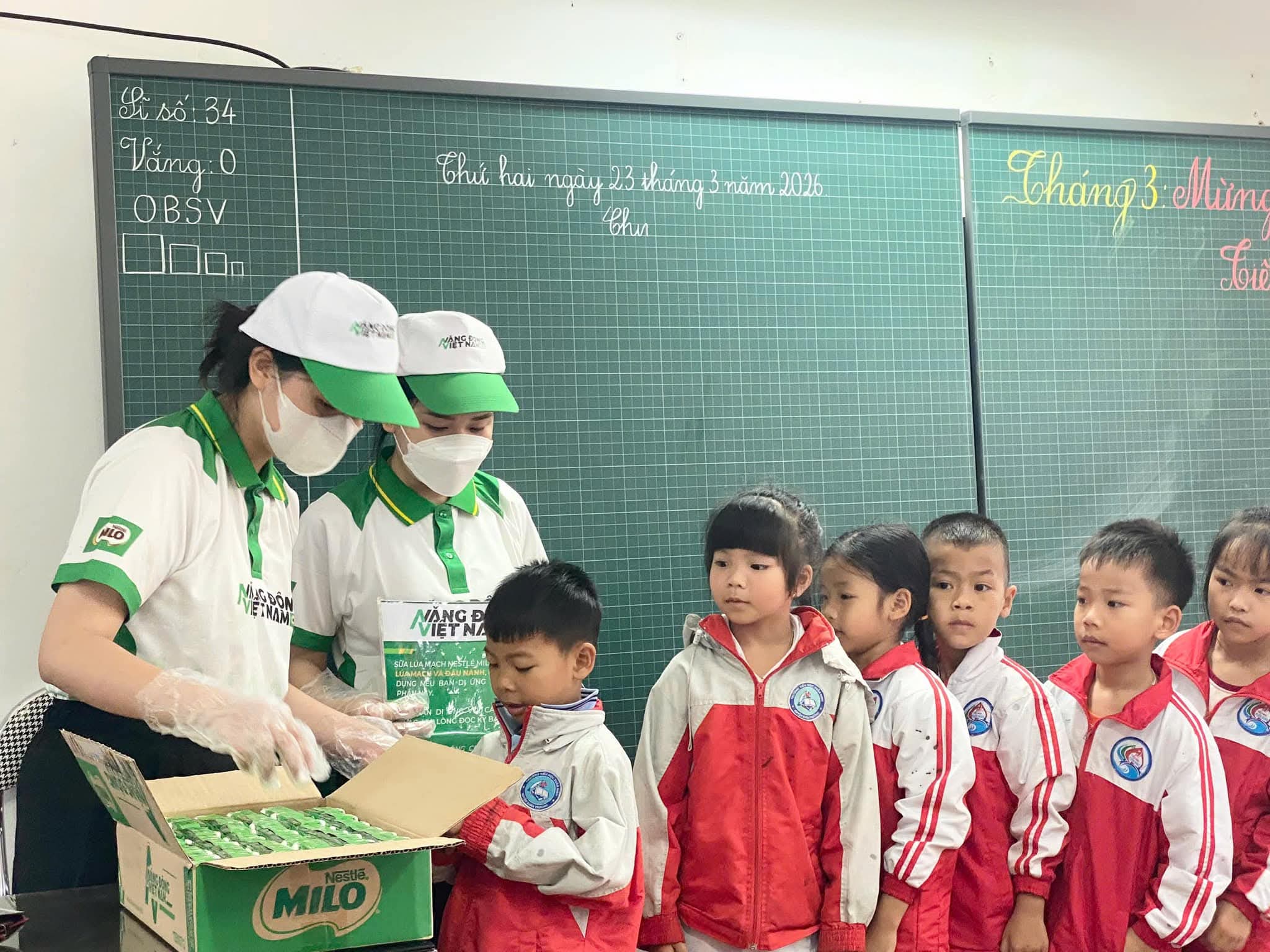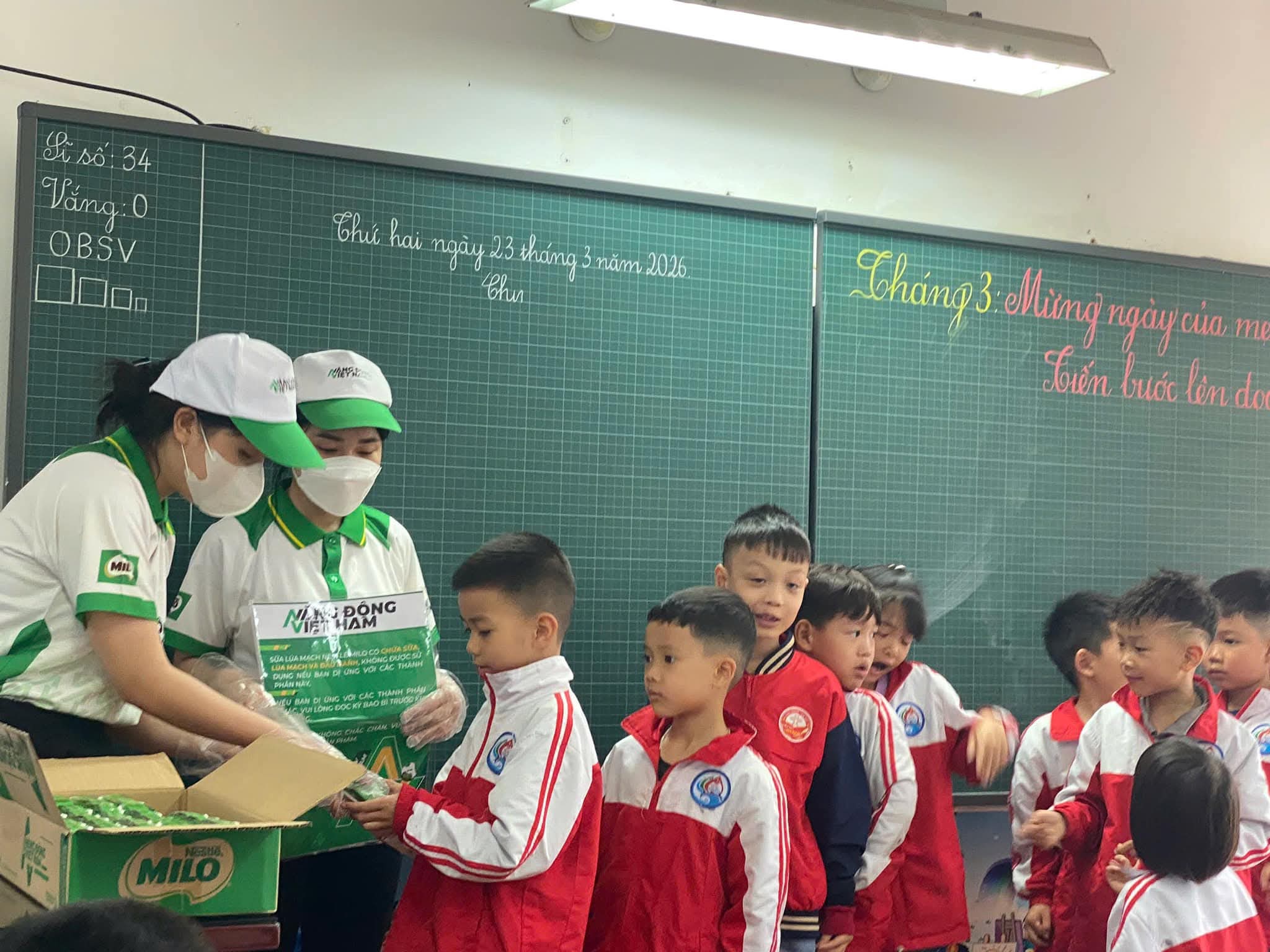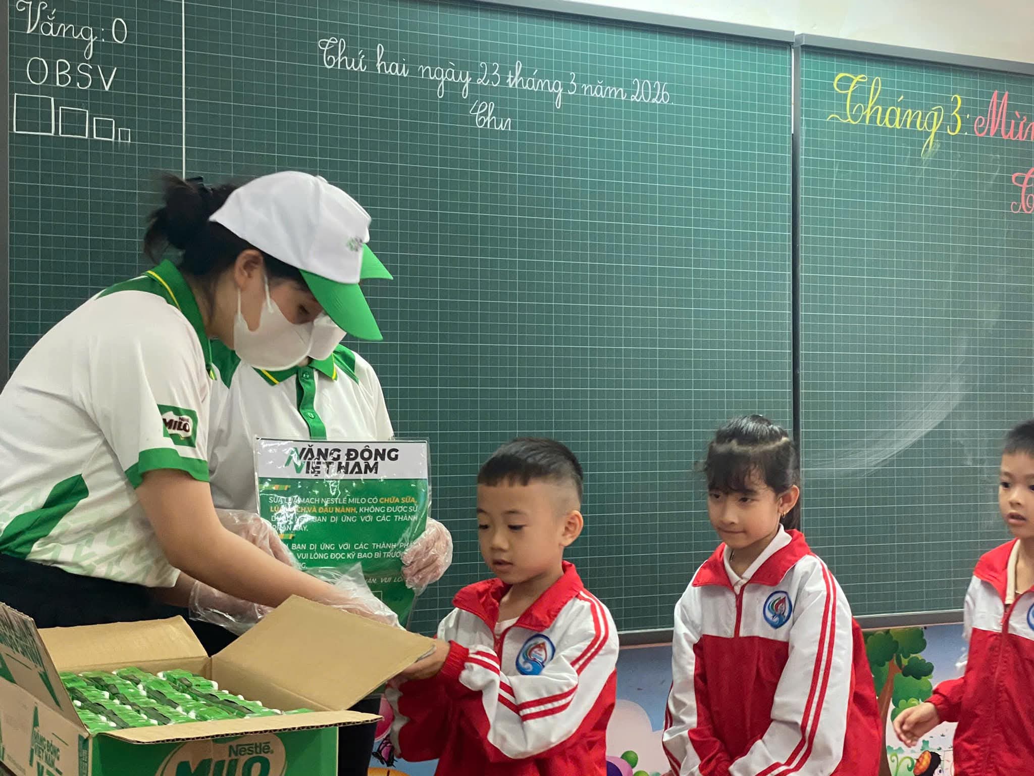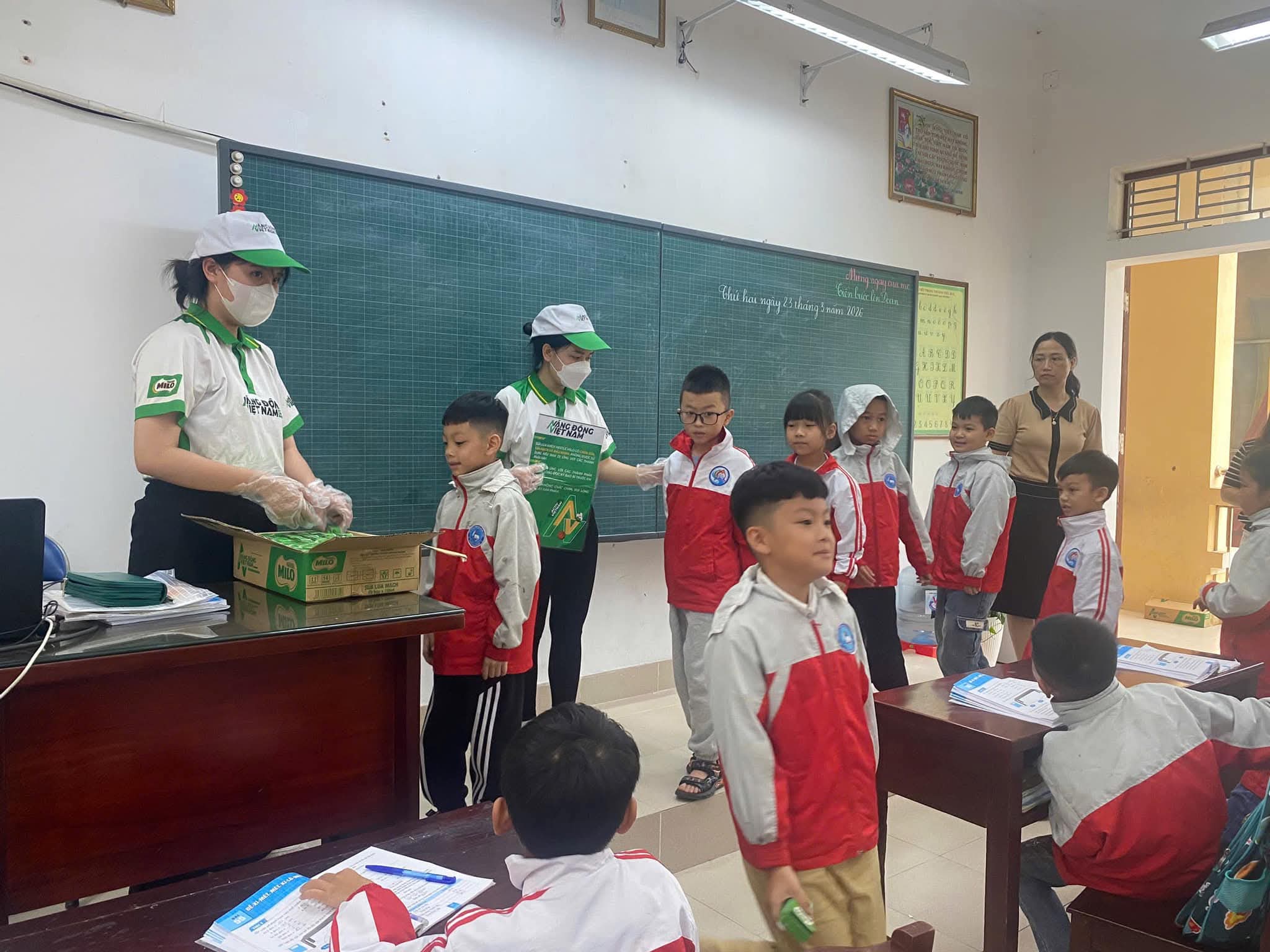 👉 Dưới đây là hình ảnh hoạt động trao nhận sữa của học sinh toàn trường.