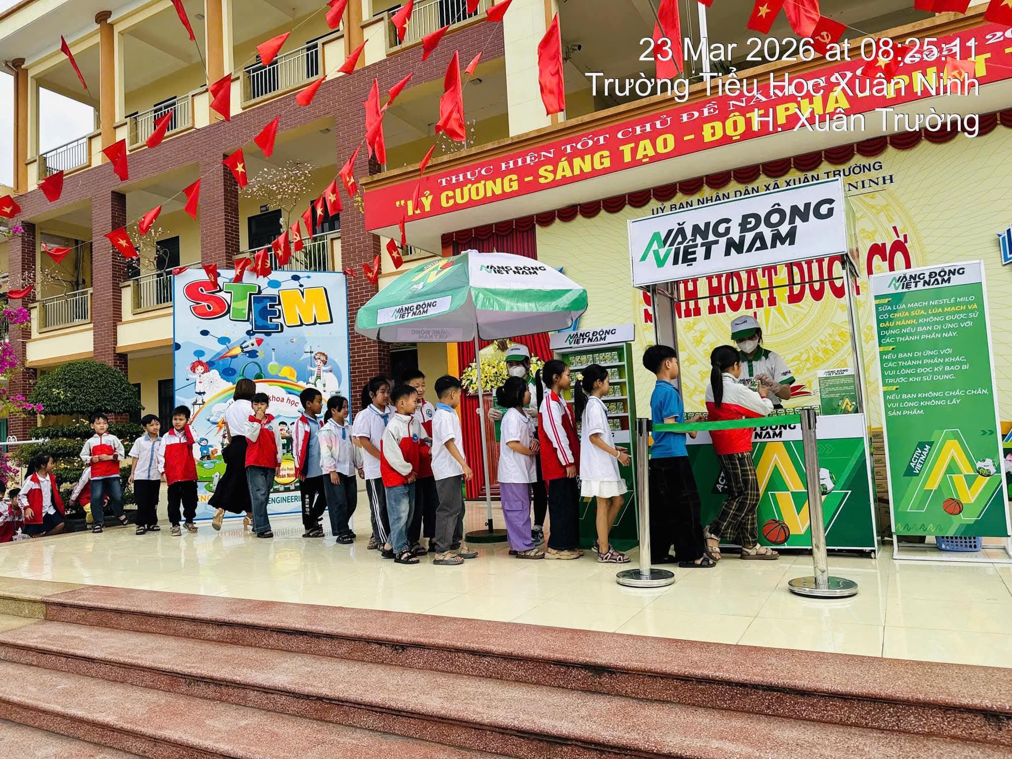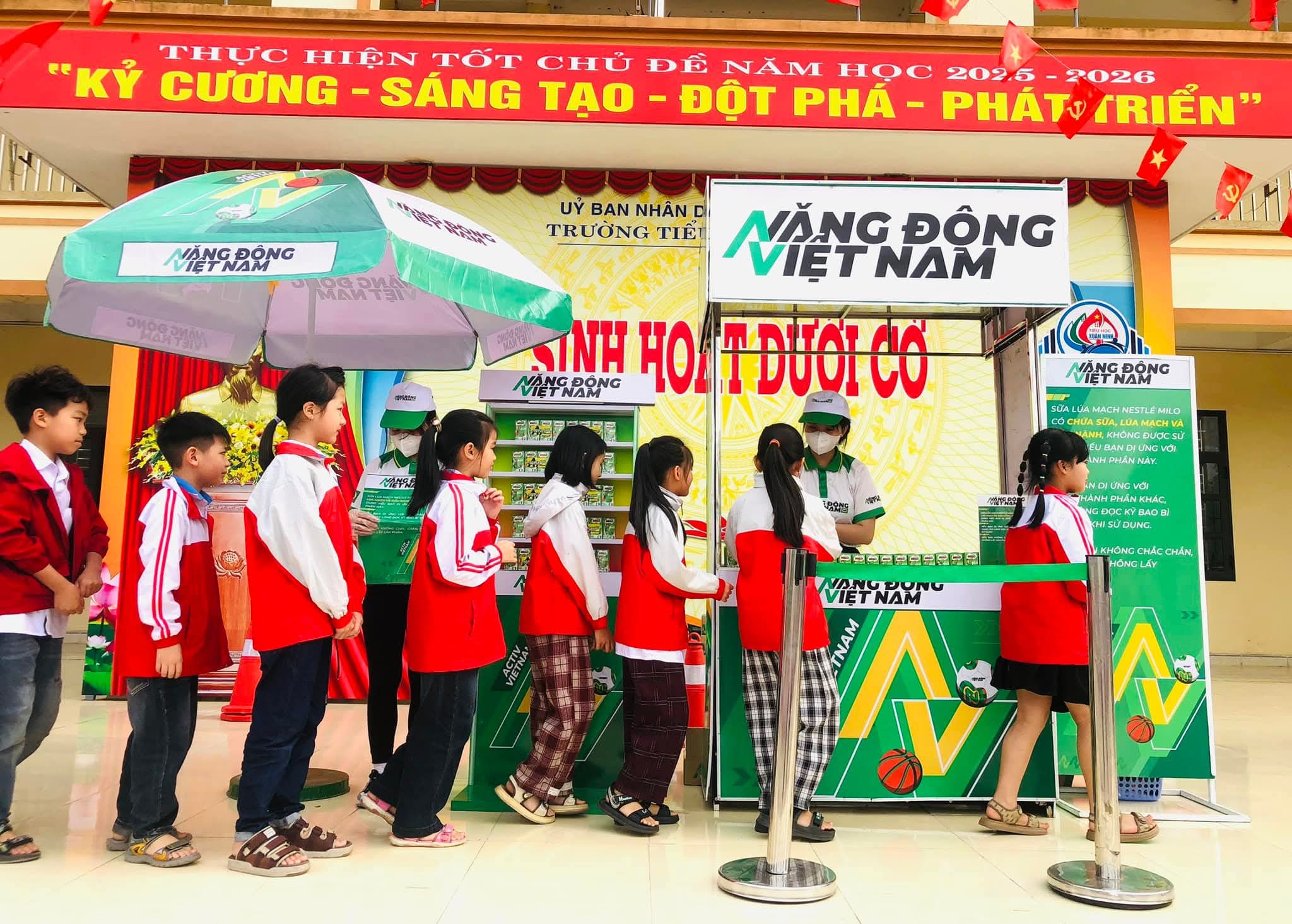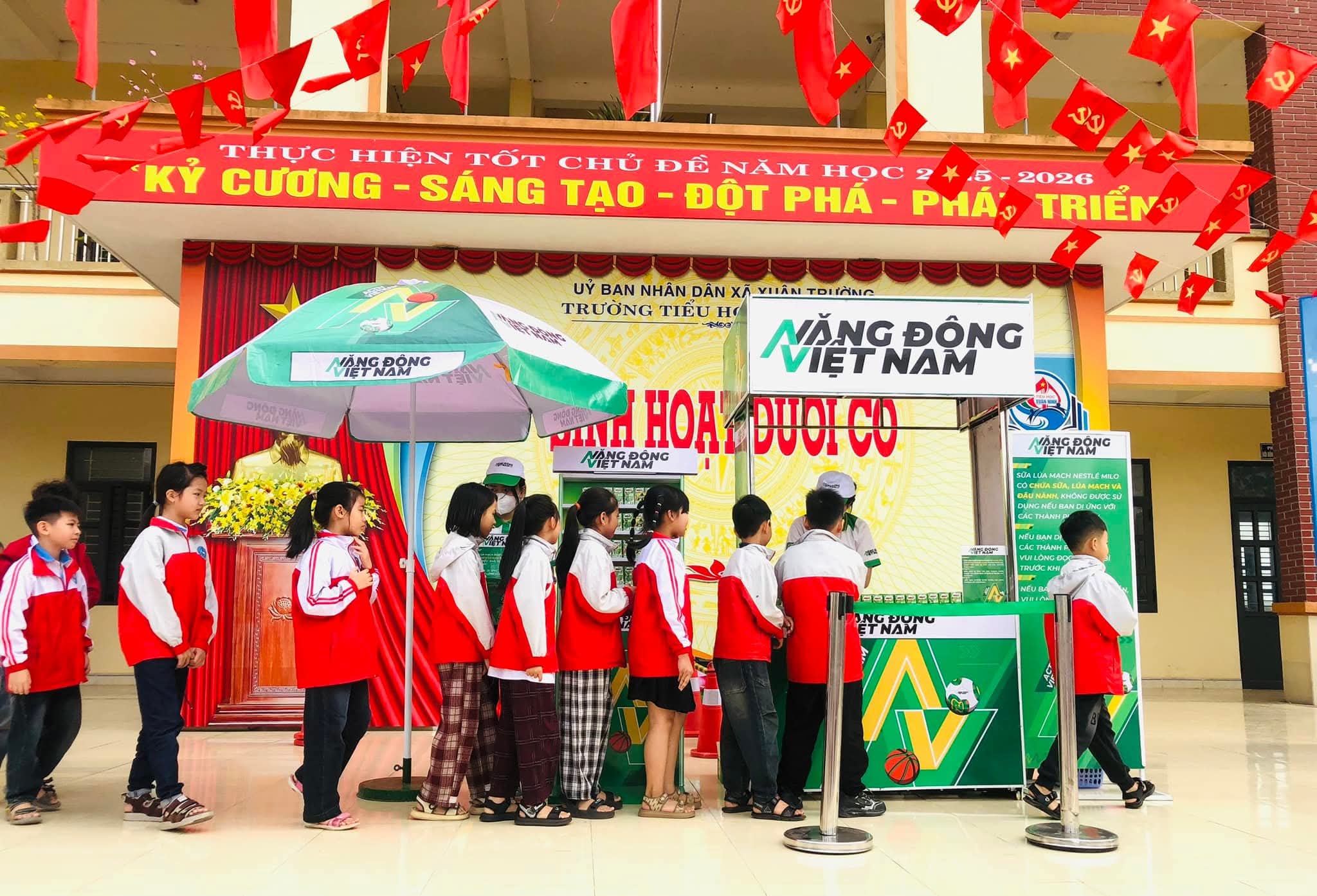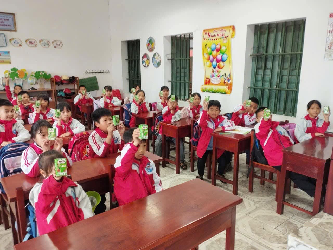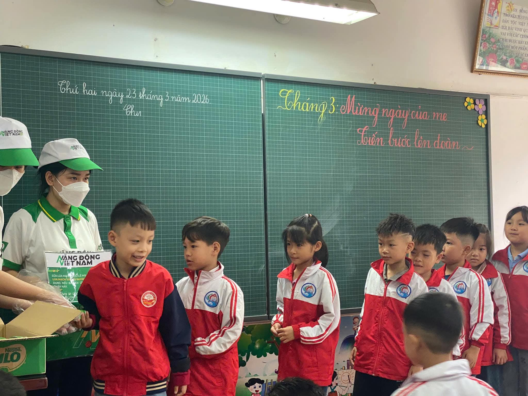 👉 Dưới đây là hình ảnh hoạt động trao nhận sữa của học sinh toàn trường.