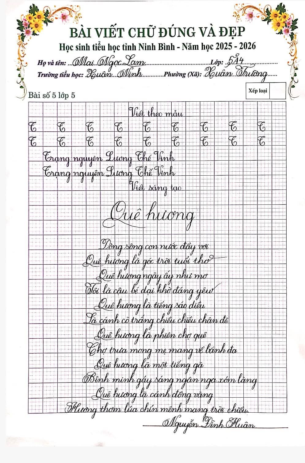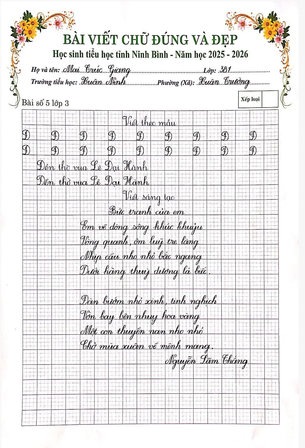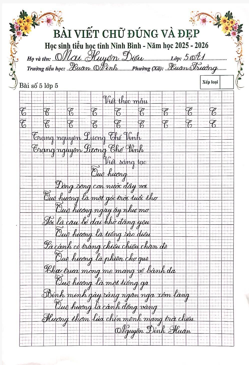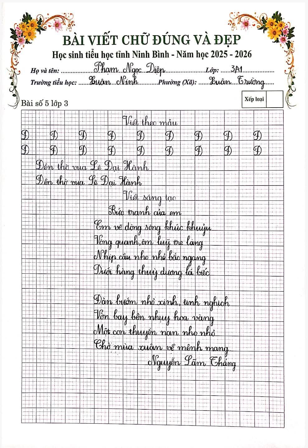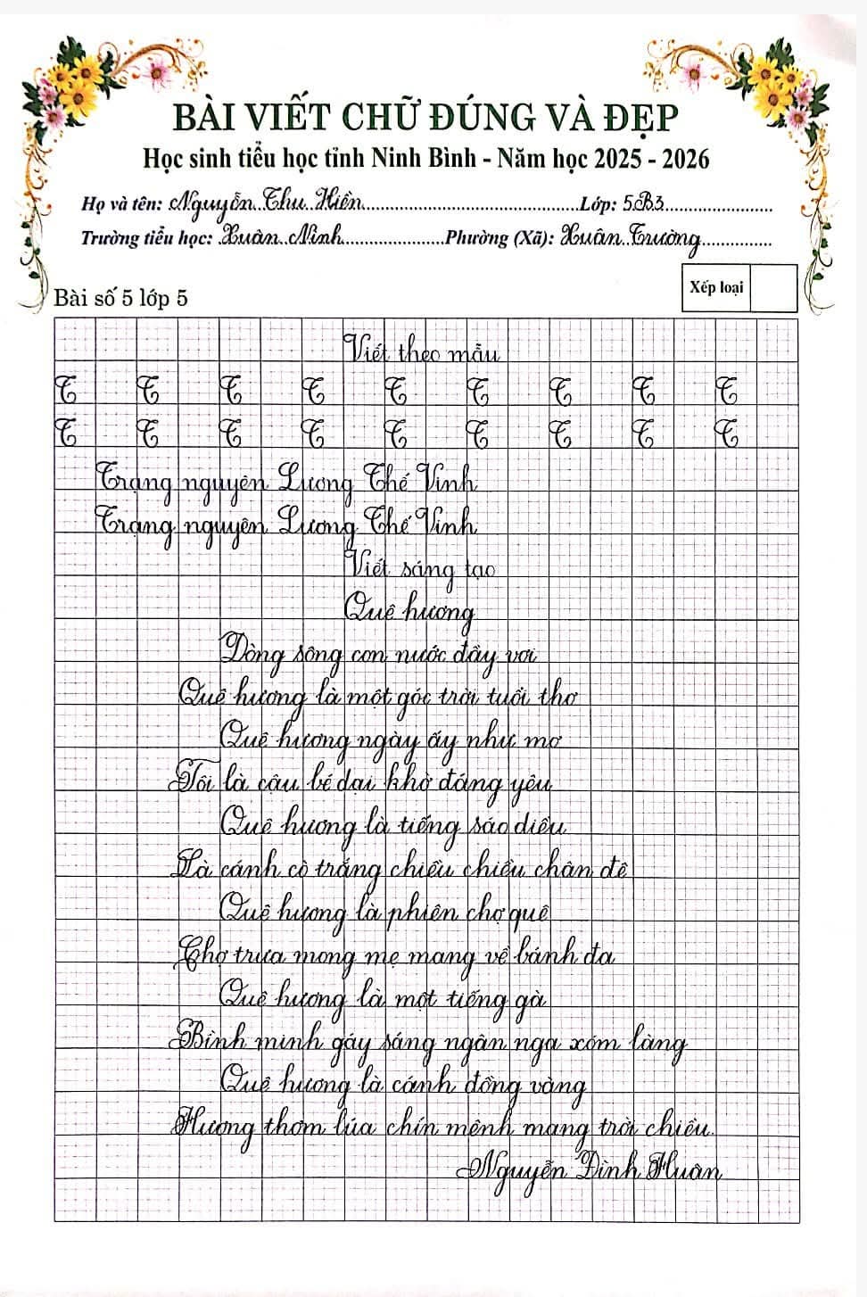 🌷“Nét chữ – Nết người” từ lâu đã trở thành một giá trị đẹp trong giáo dục tiểu học. Việc rèn luyện chữ viết không chỉ giúp học sinh viết đúng, viết đẹp mà còn góp phần hình thành tính cẩn thận, kiên trì và ý thức học tập nghiêm túc. Nhằm tiếp tục duy trì và phát huy phong trào “Giữ vở sạch – Viết chữ đẹp”, chiều ngày 06/3/2026, Trường Tiểu học Xuân Ninh đã tổ chức Cuộc thi “Chữ viết đúng và đẹp” cấp trường với sự tham gia của nhiều học sinh tiêu biểu từ các khối lớp.