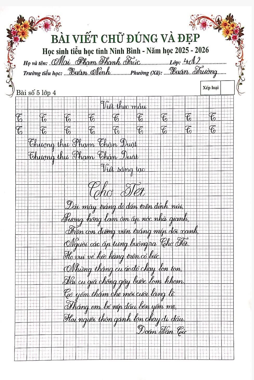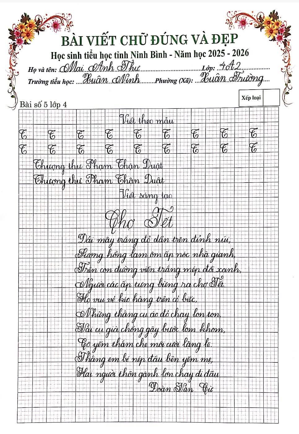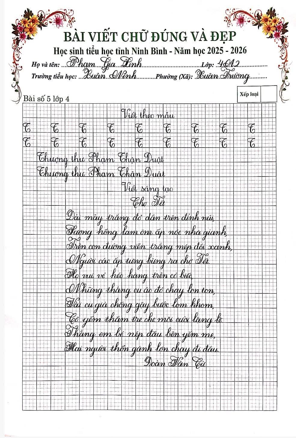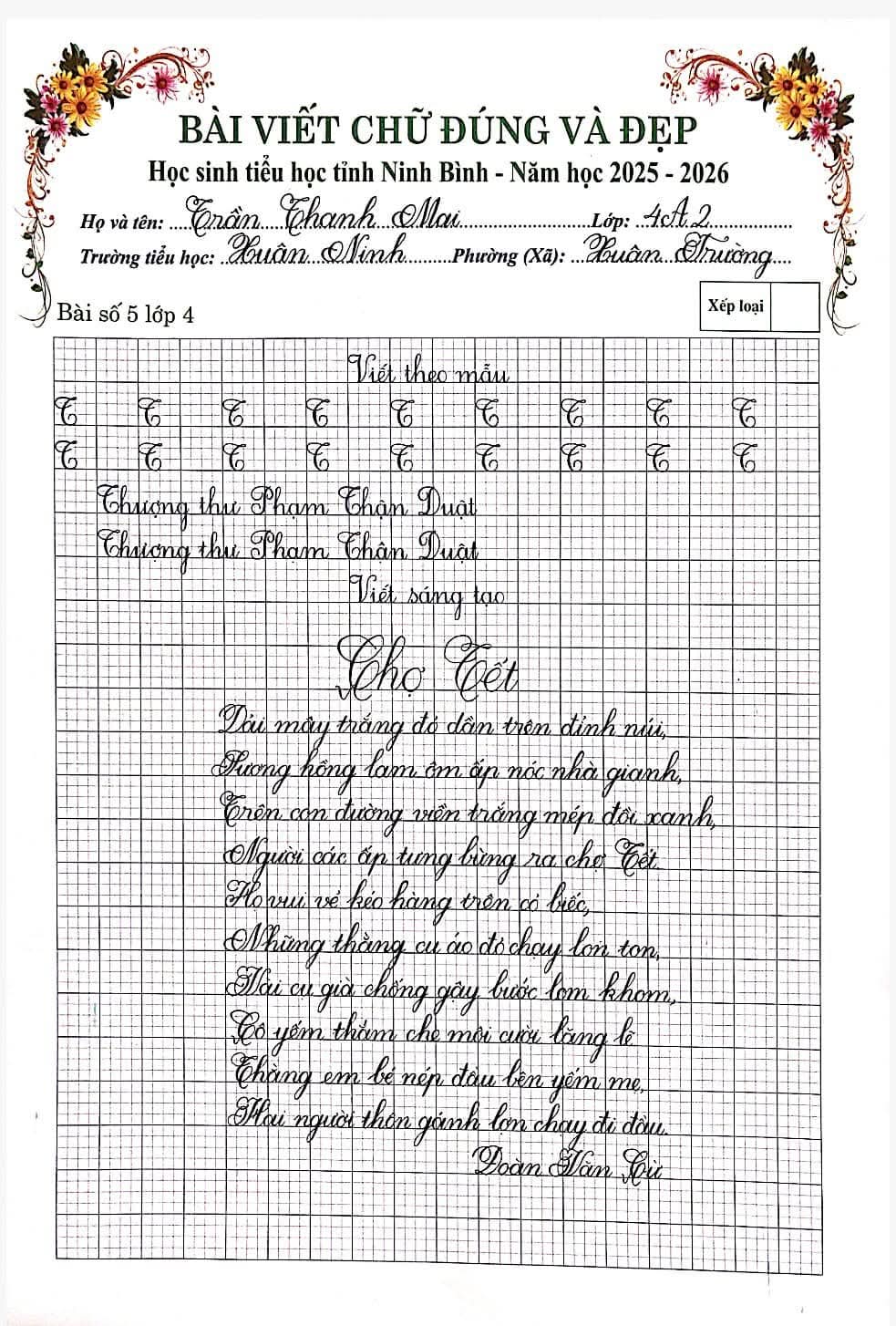 🌷“Nét chữ – Nết người” từ lâu đã trở thành một giá trị đẹp trong giáo dục tiểu học. Việc rèn luyện chữ viết không chỉ giúp học sinh viết đúng, viết đẹp mà còn góp phần hình thành tính cẩn thận, kiên trì và ý thức học tập nghiêm túc. Nhằm tiếp tục duy trì và phát huy phong trào “Giữ vở sạch – Viết chữ đẹp”, chiều ngày 06/3/2026, Trường Tiểu học Xuân Ninh đã tổ chức Cuộc thi “Chữ viết đúng và đẹp” cấp trường với sự tham gia của nhiều học sinh tiêu biểu từ các khối lớp.