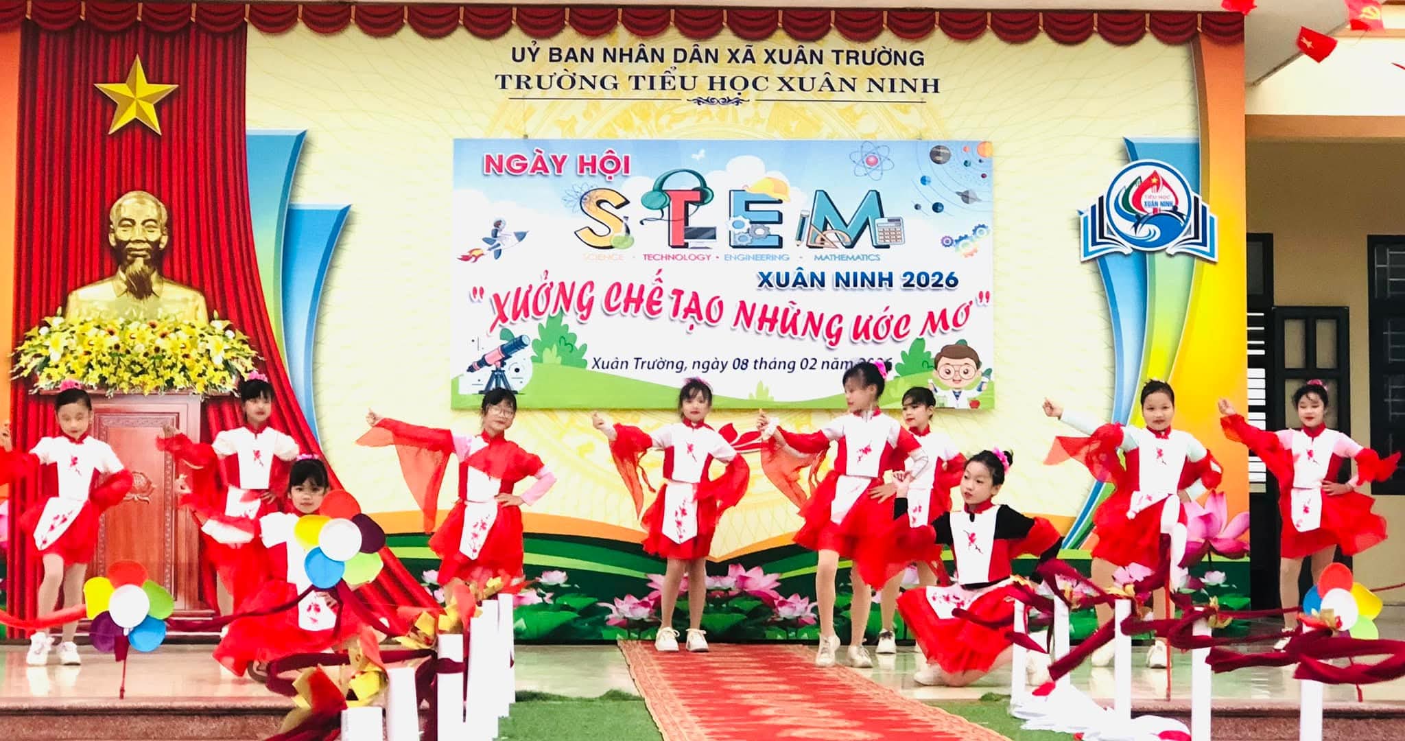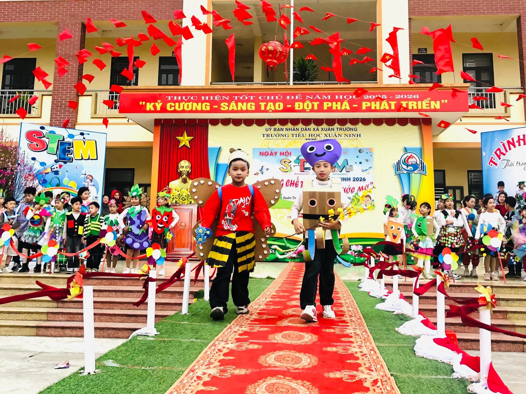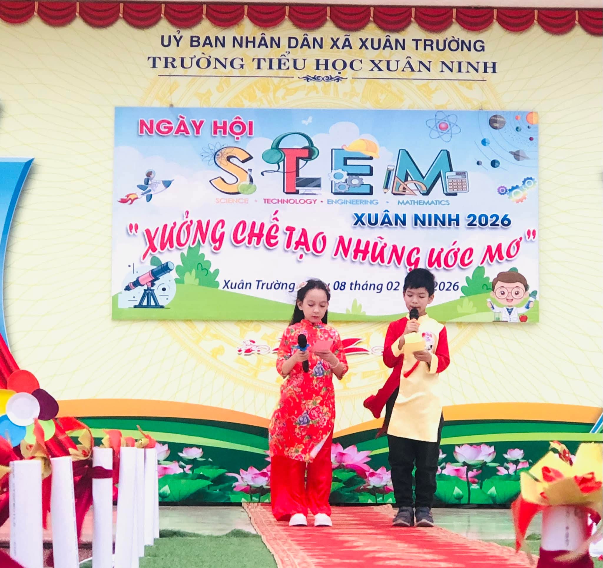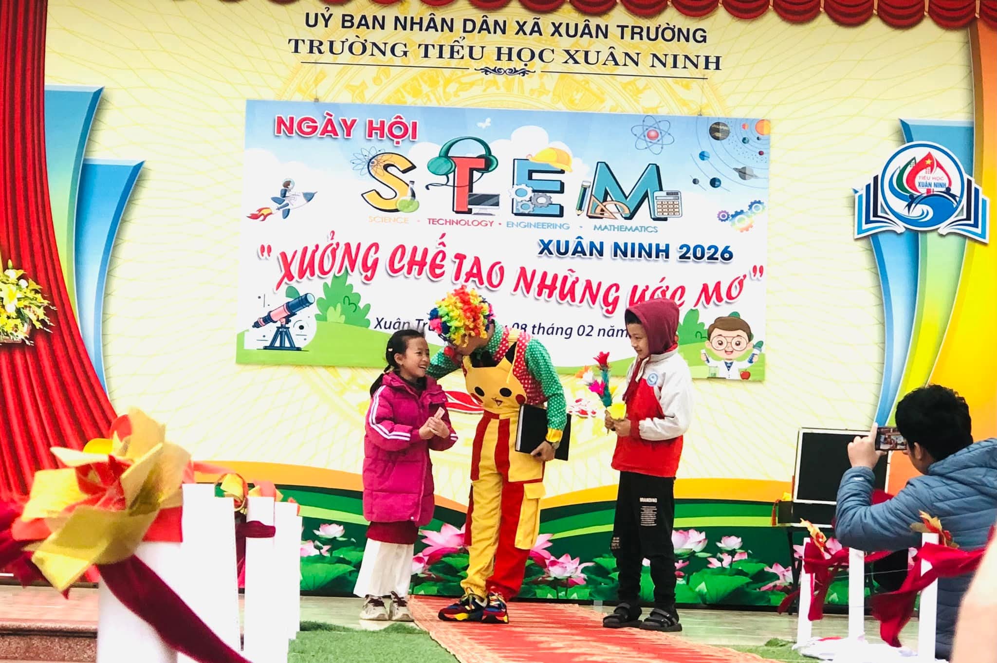 🌸Nhằm tạo sân chơi lành mạnh, bổ ích, khơi dậy niềm đam mê khoa học, công nghệ, kỹ thuật và toán học (STEM) trong học sinh; nâng cao hiểu biết và kỹ năng thực hành STEM, gắn kết kiến thức học đường với thực tiễn cuộc sống; tăng cường sự phối hợp giữa nhà trường, phụ huynh và cộng đồng trong việc giáo dục học sinh; tạo không khí vui tươi, sôi nổi chào đón mùa xuân và kỷ niệm các ngày lễ lớn của dân tộc trong năm 2026, hôm nay (08/02/2026) trường Tiểu học Xuân Ninh tưng bừng tổ chức “Ngày hội STEM” năm học 2025-2026.