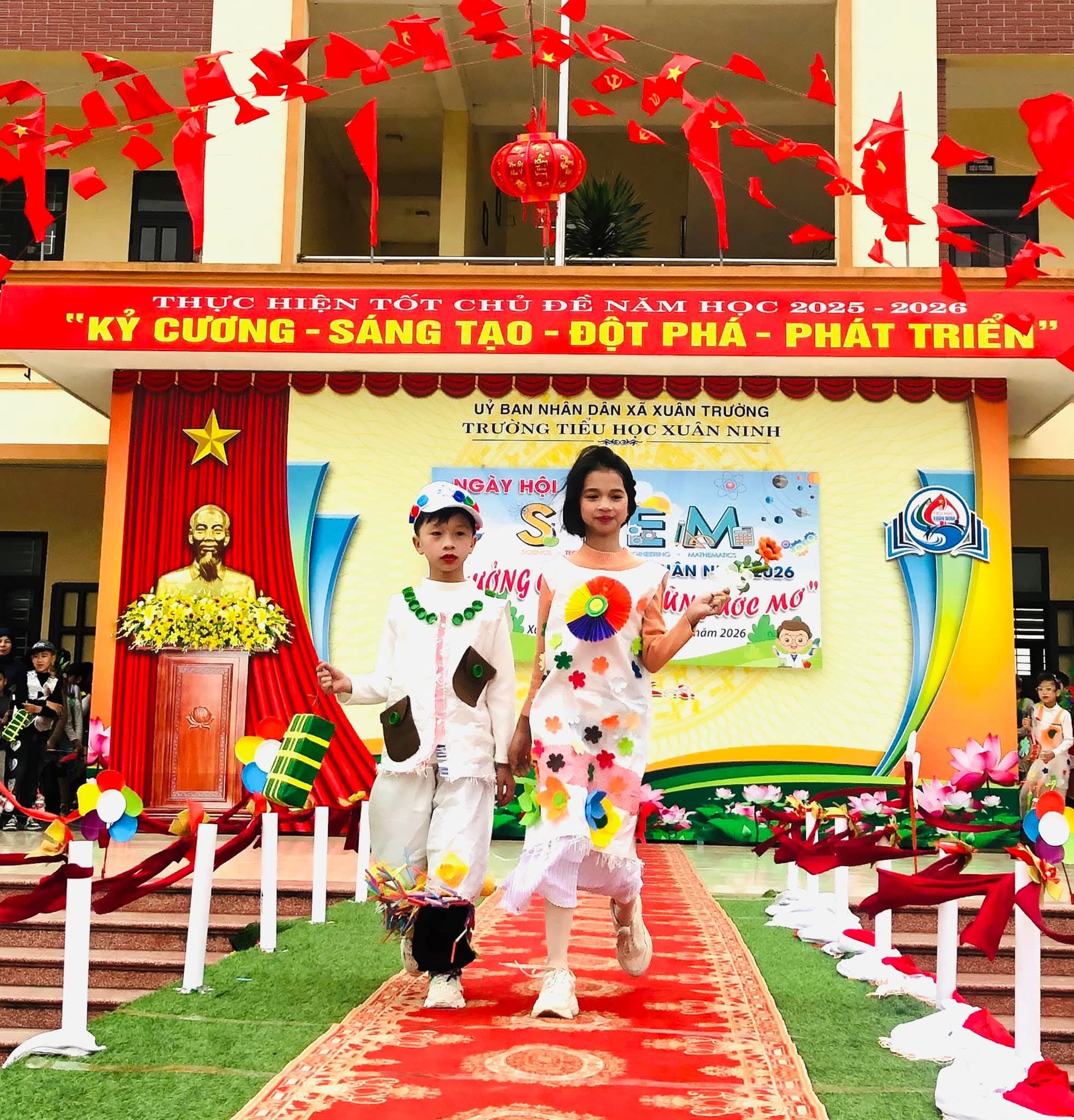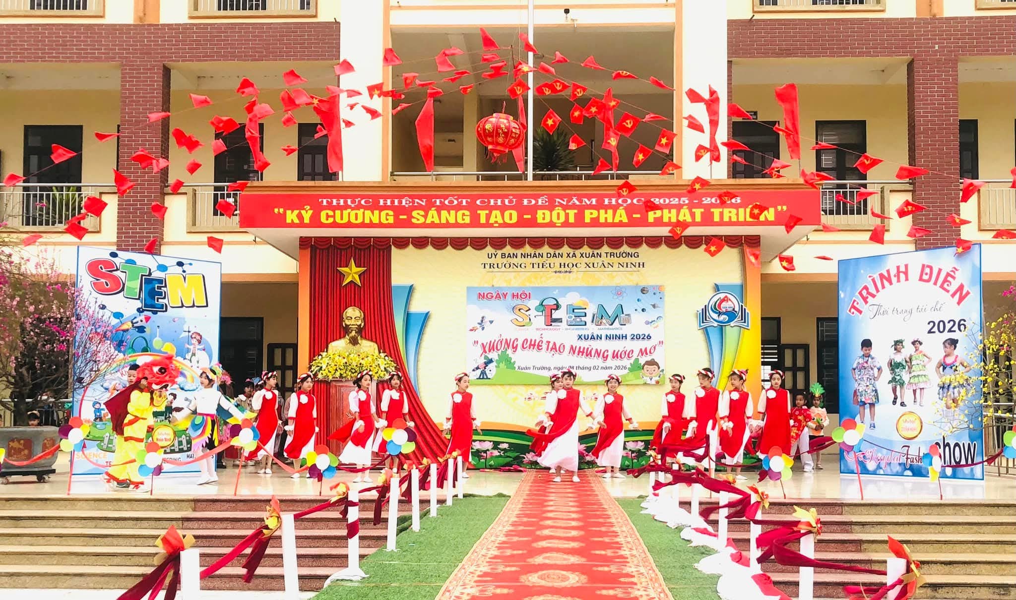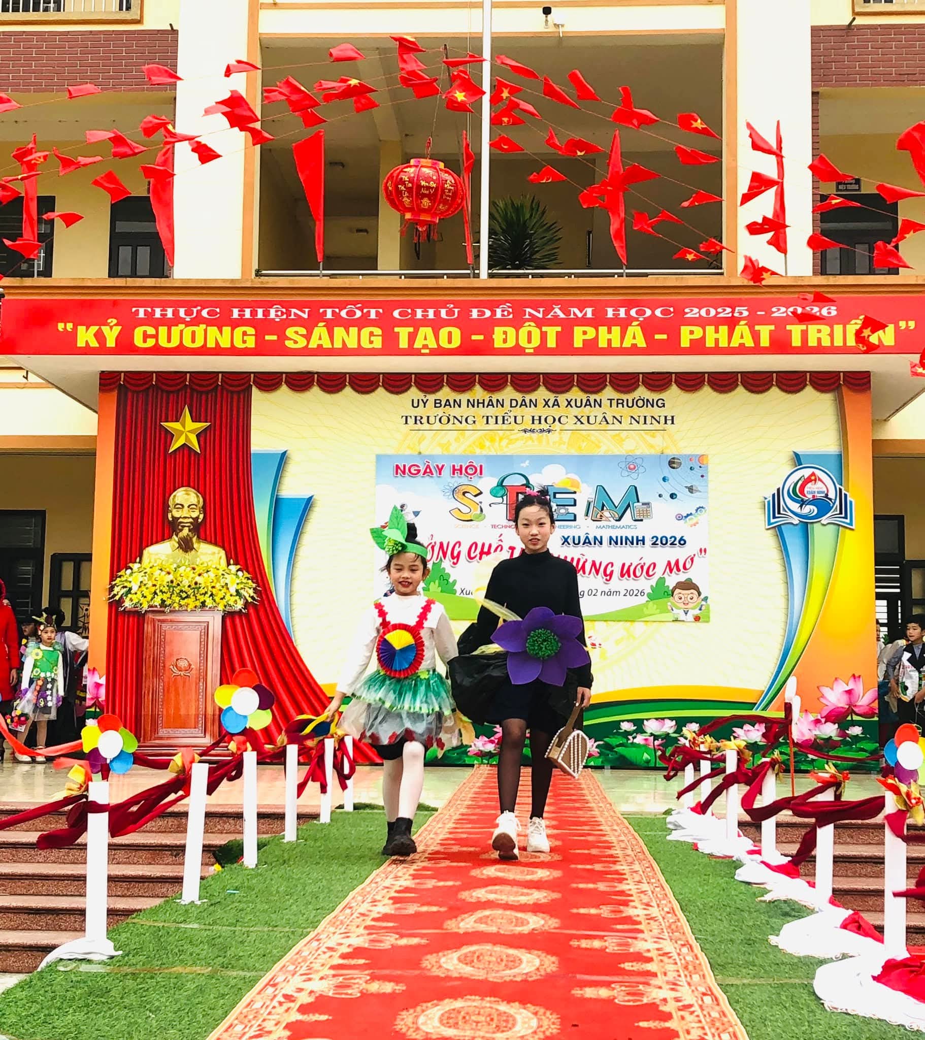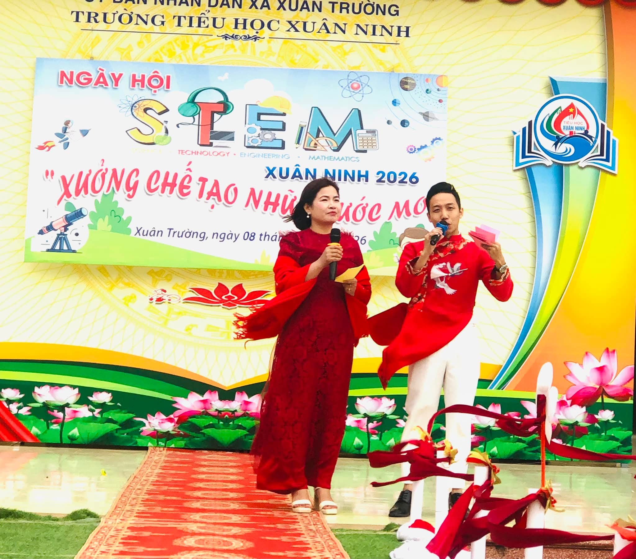 🌸Nhằm tạo sân chơi lành mạnh, bổ ích, khơi dậy niềm đam mê khoa học, công nghệ, kỹ thuật và toán học (STEM) trong học sinh; nâng cao hiểu biết và kỹ năng thực hành STEM, gắn kết kiến thức học đường với thực tiễn cuộc sống; tăng cường sự phối hợp giữa nhà trường, phụ huynh và cộng đồng trong việc giáo dục học sinh; tạo không khí vui tươi, sôi nổi chào đón mùa xuân và kỷ niệm các ngày lễ lớn của dân tộc trong năm 2026, hôm nay (08/02/2026) trường Tiểu học Xuân Ninh tưng bừng tổ chức “Ngày hội STEM” năm học 2025-2026.