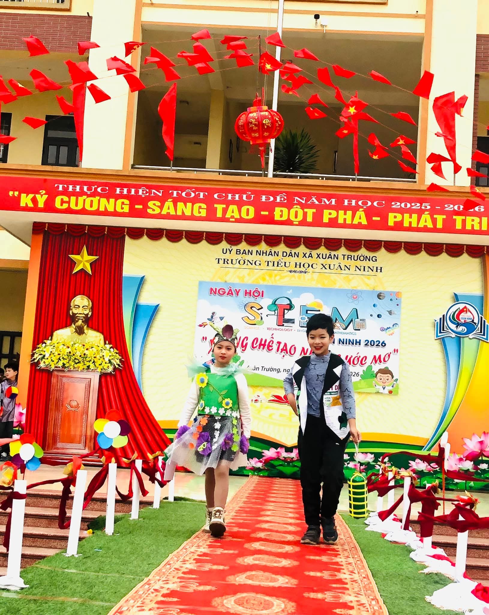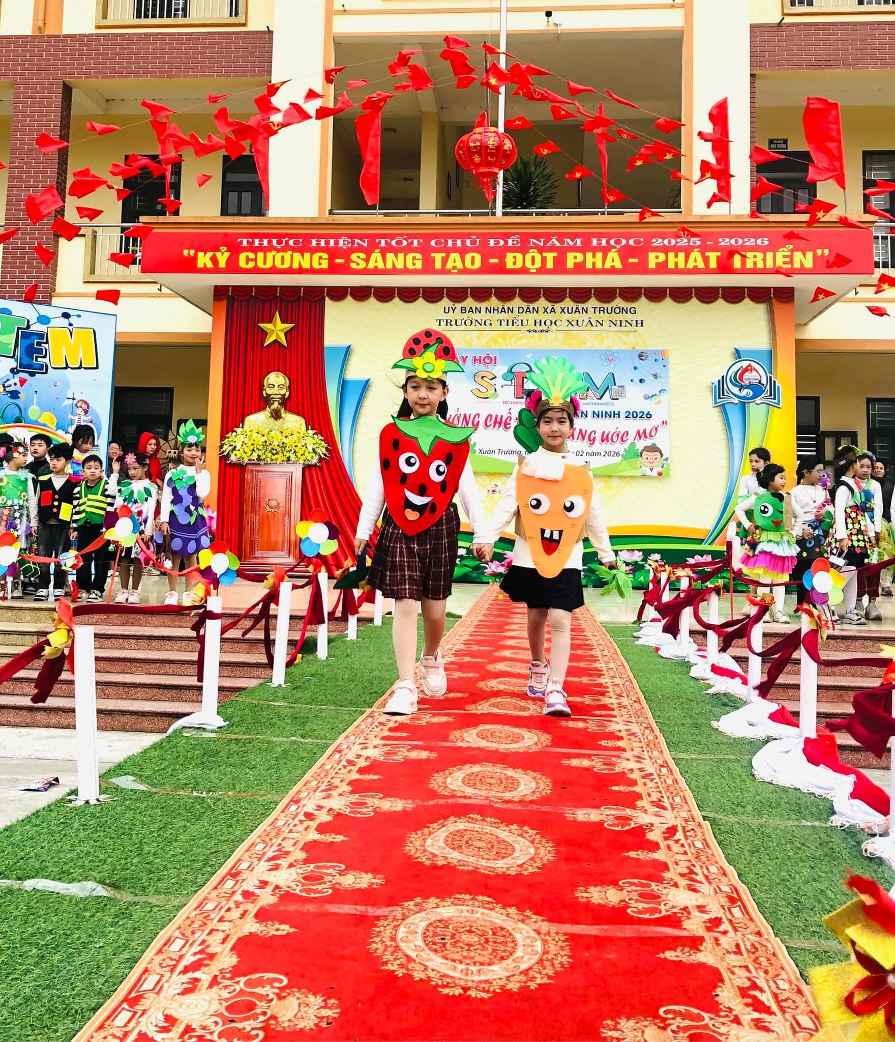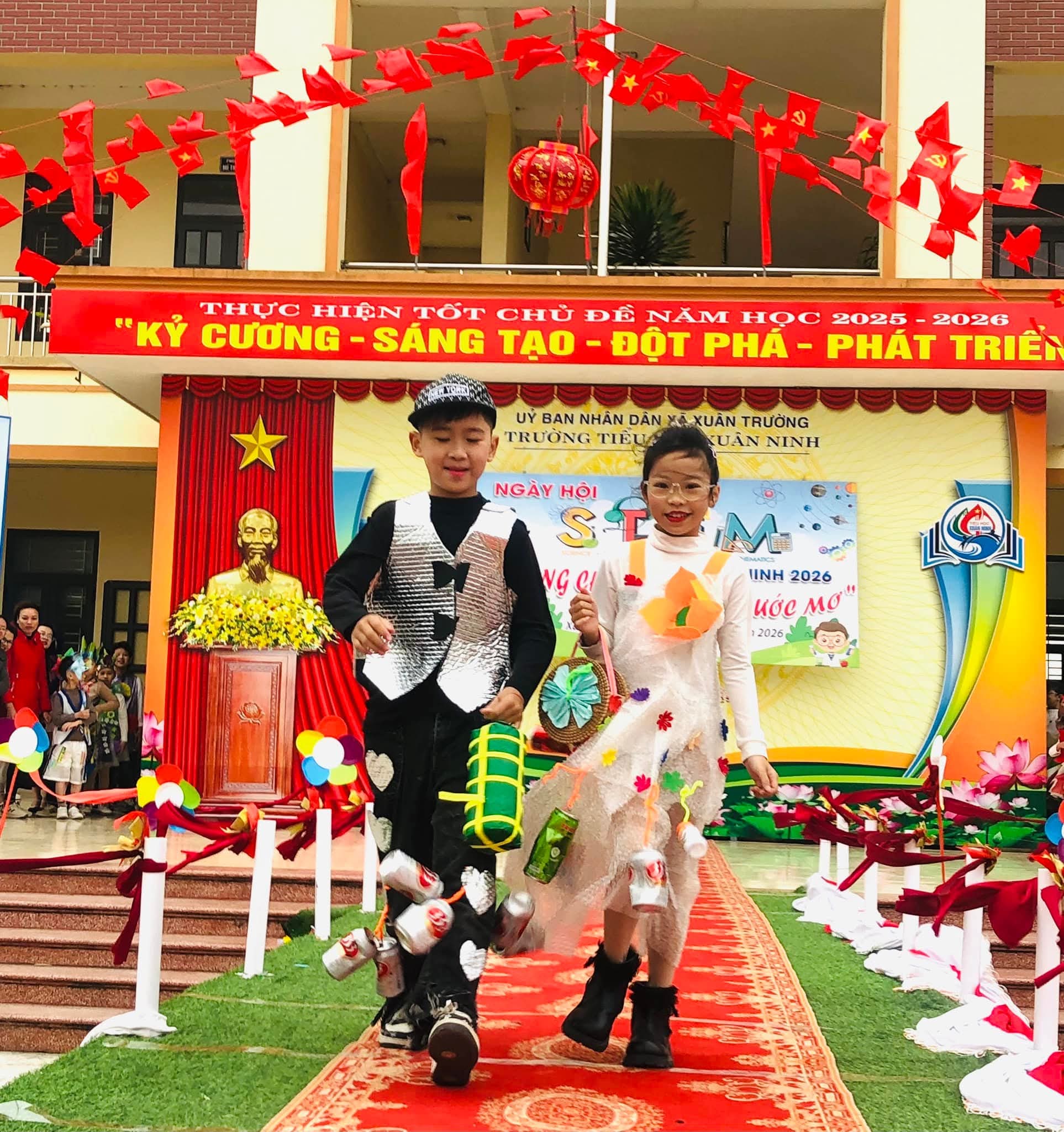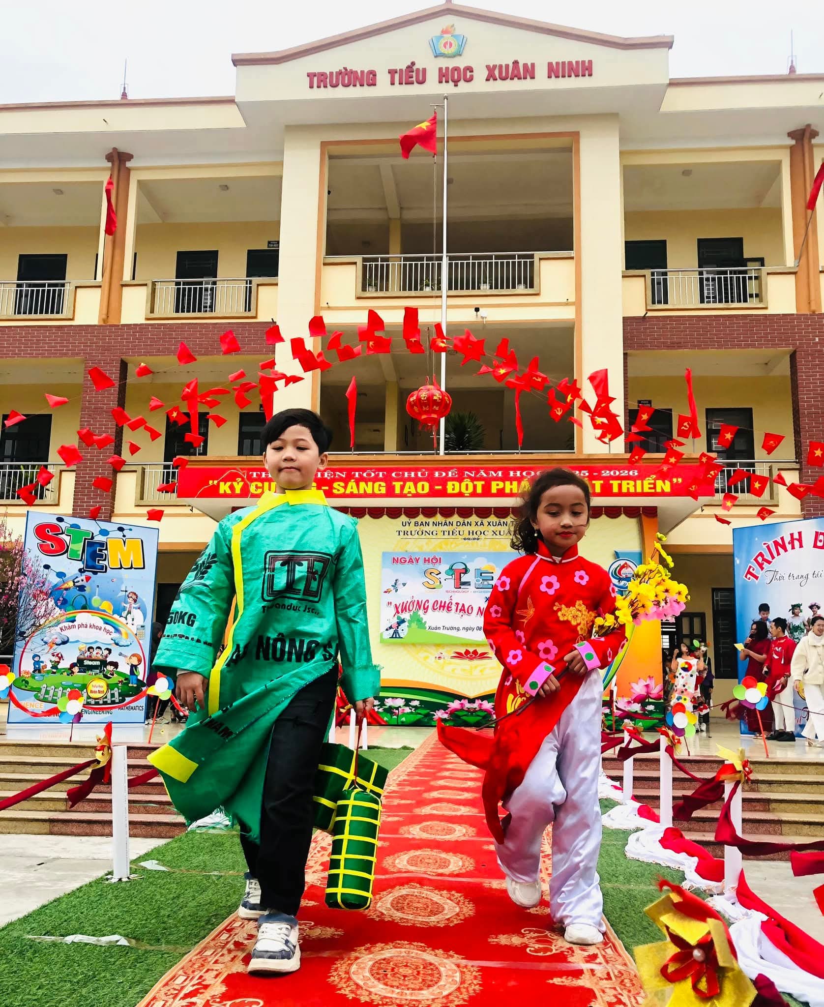 🌸Nhằm tạo sân chơi lành mạnh, bổ ích, khơi dậy niềm đam mê khoa học, công nghệ, kỹ thuật và toán học (STEM) trong học sinh; nâng cao hiểu biết và kỹ năng thực hành STEM, gắn kết kiến thức học đường với thực tiễn cuộc sống; tăng cường sự phối hợp giữa nhà trường, phụ huynh và cộng đồng trong việc giáo dục học sinh; tạo không khí vui tươi, sôi nổi chào đón mùa xuân và kỷ niệm các ngày lễ lớn của dân tộc trong năm 2026, hôm nay (08/02/2026) trường Tiểu học Xuân Ninh tưng bừng tổ chức “Ngày hội STEM” năm học 2025-2026.