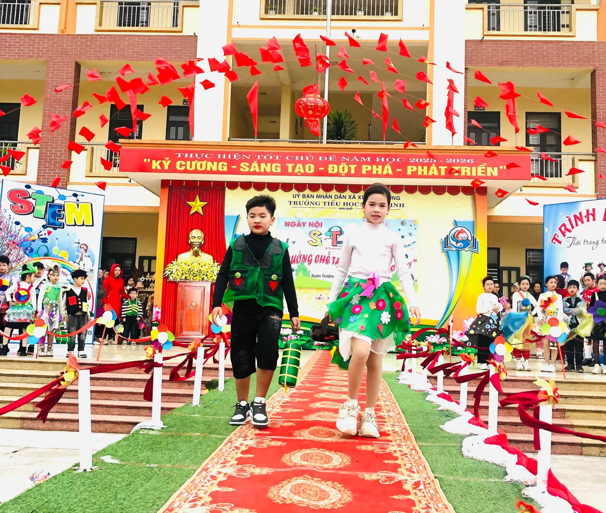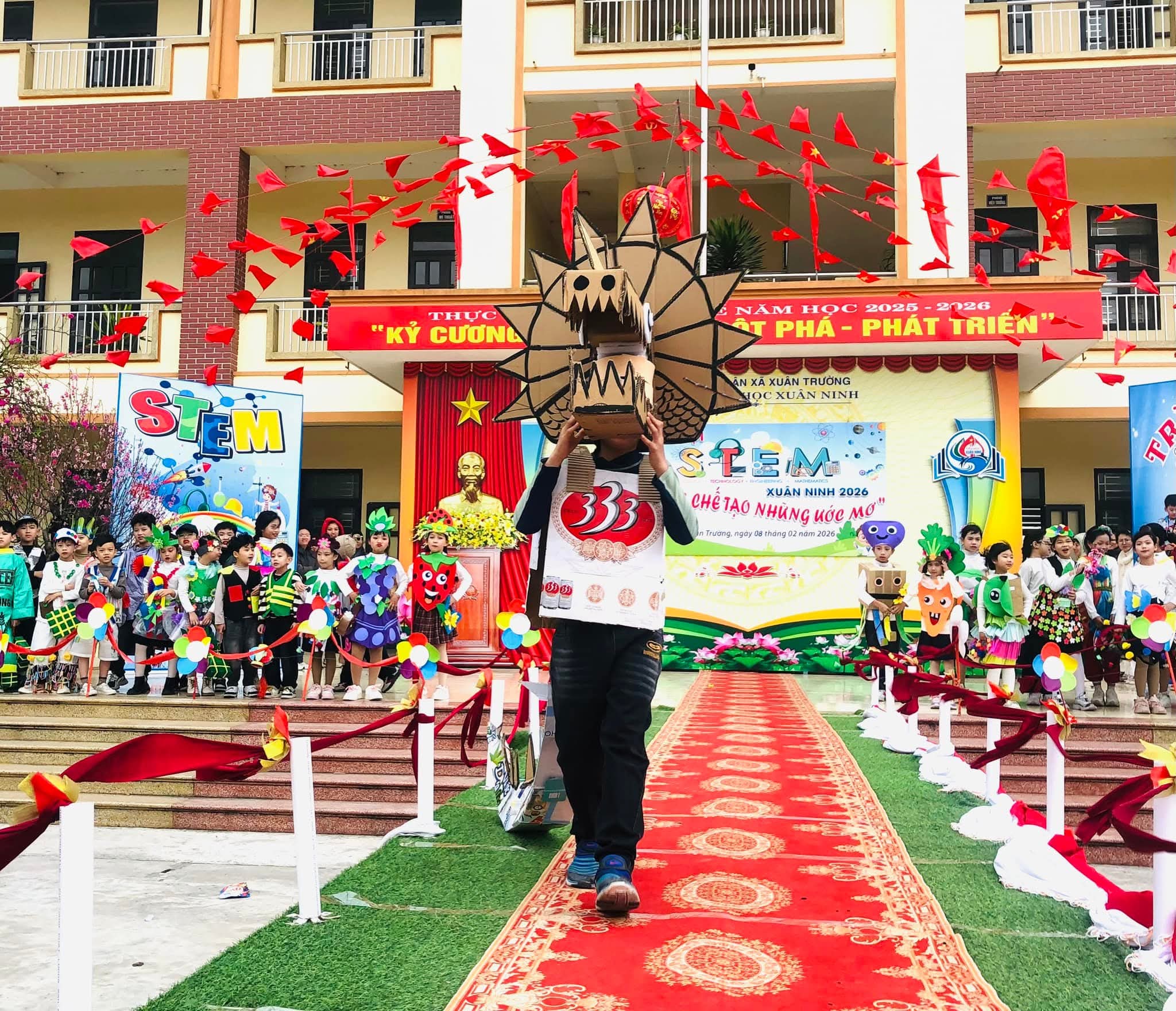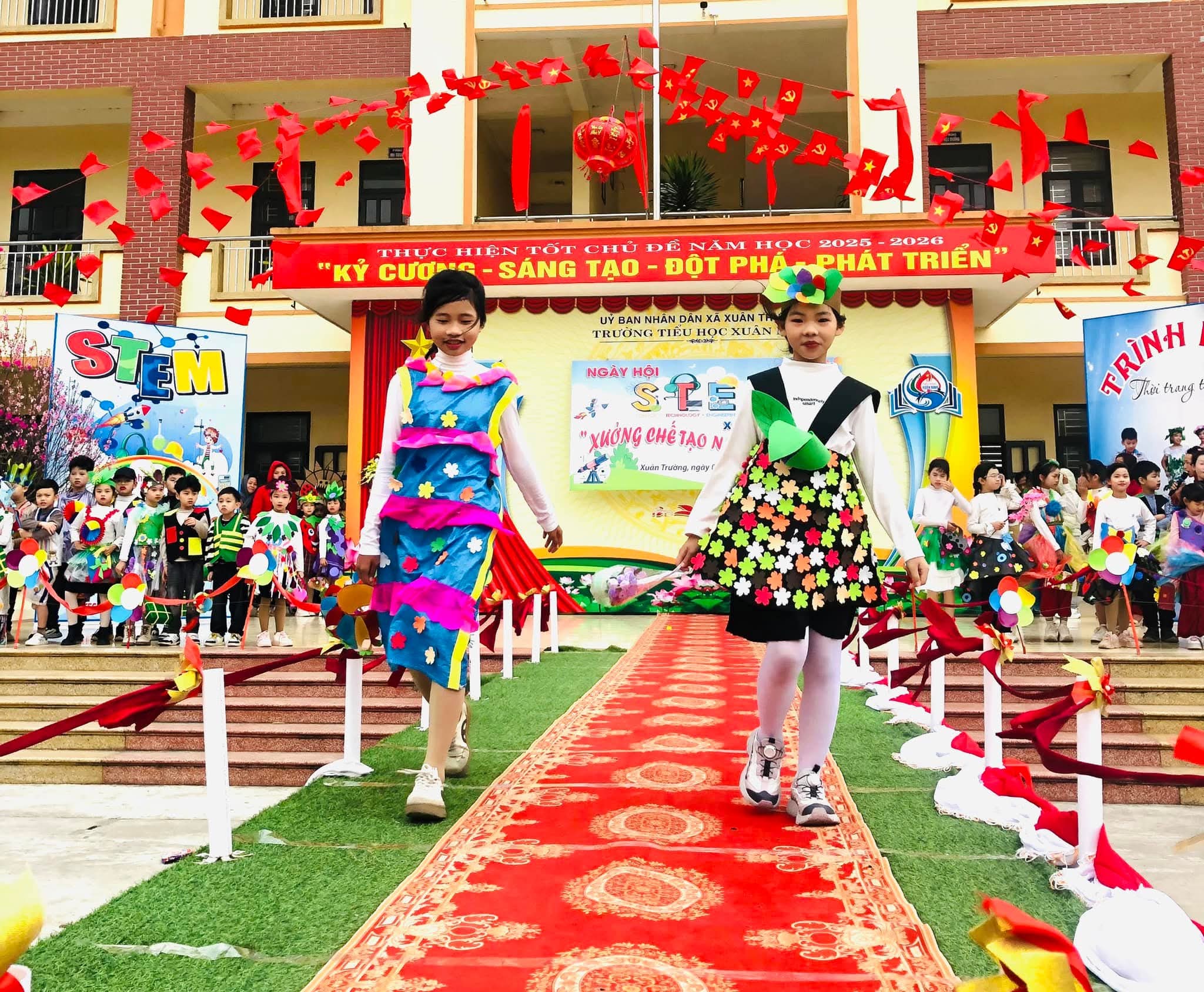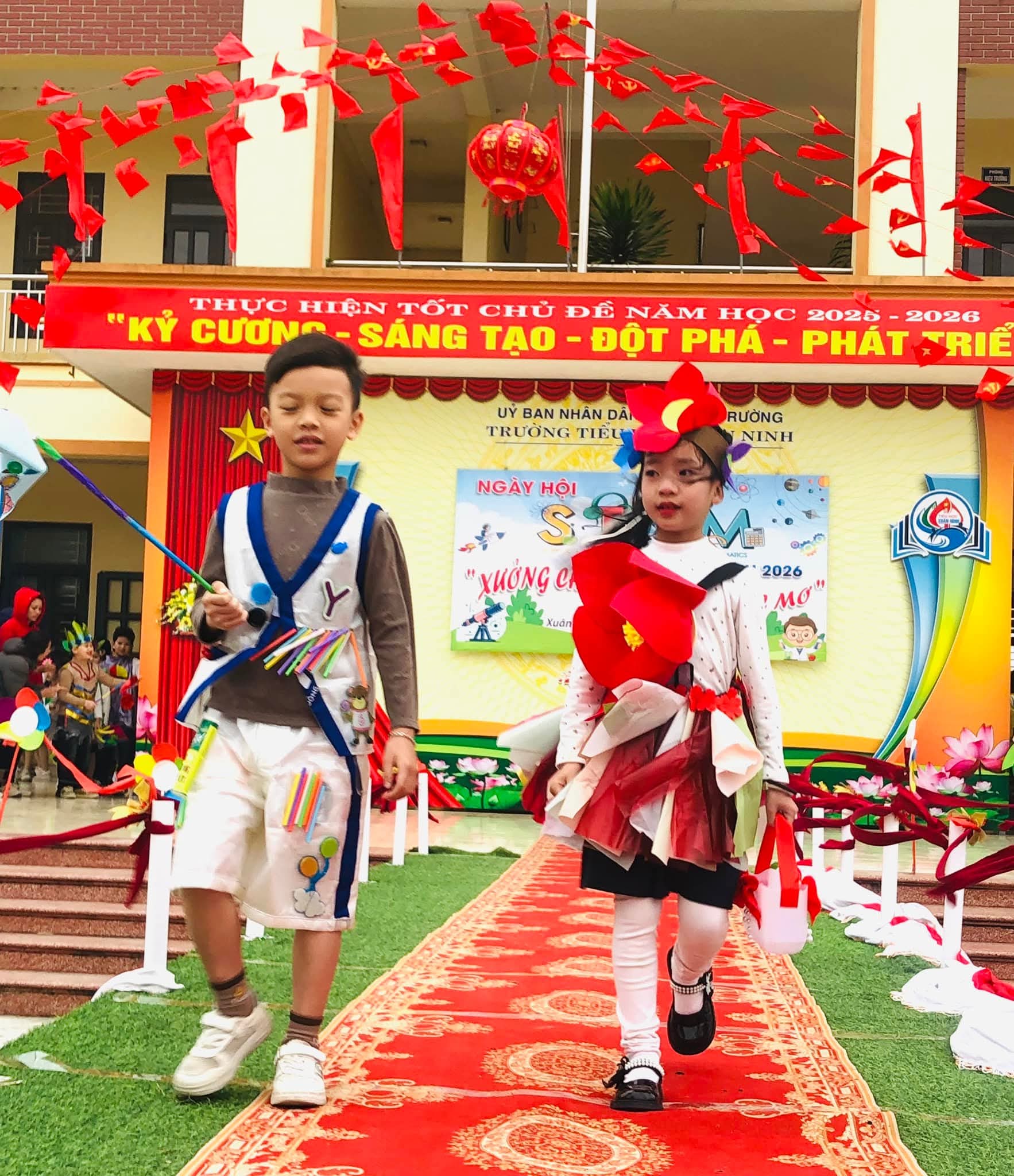 🌸Nhằm tạo sân chơi lành mạnh, bổ ích, khơi dậy niềm đam mê khoa học, công nghệ, kỹ thuật và toán học (STEM) trong học sinh; nâng cao hiểu biết và kỹ năng thực hành STEM, gắn kết kiến thức học đường với thực tiễn cuộc sống; tăng cường sự phối hợp giữa nhà trường, phụ huynh và cộng đồng trong việc giáo dục học sinh; tạo không khí vui tươi, sôi nổi chào đón mùa xuân và kỷ niệm các ngày lễ lớn của dân tộc trong năm 2026, hôm nay (08/02/2026) trường Tiểu học Xuân Ninh tưng bừng tổ chức “Ngày hội STEM” năm học 2025-2026.