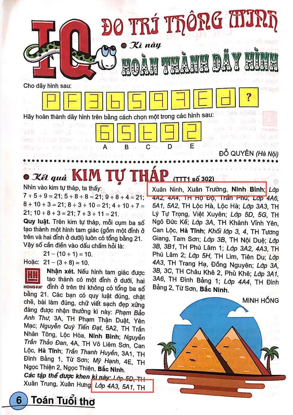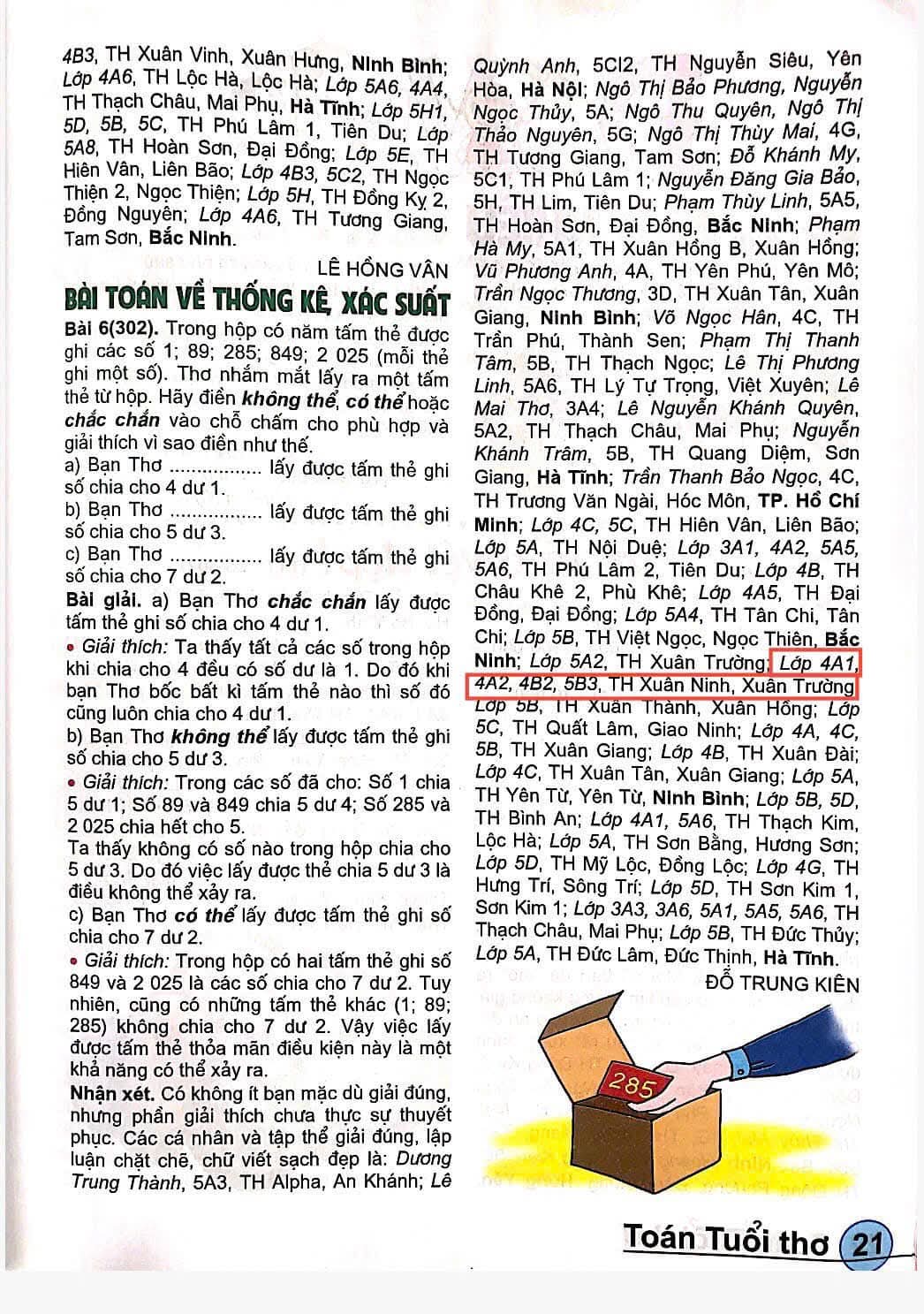 Tập thể lớp có bài được đăng trên tạp chí toán tuổi thơ số 304 tháng 2 năm 2026