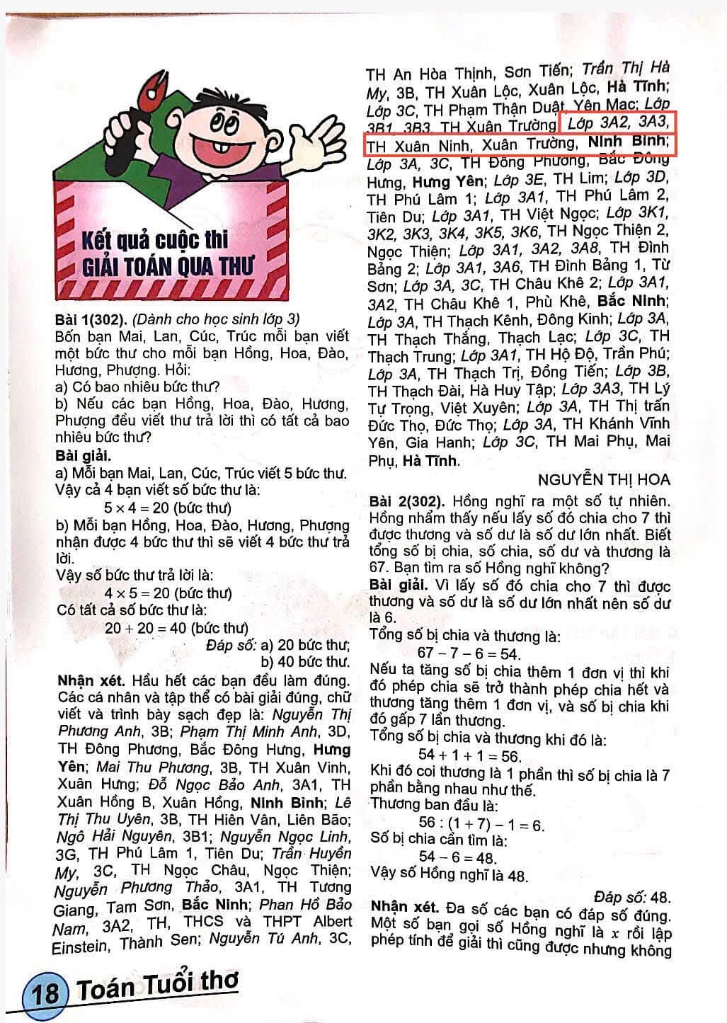 🌸Xin được chúc mừng các tập thể lớp 3A2, 3A3, 3A4, 4A1, 4A2, 4A3, 4B1, 4B2, 5A1, 5A2, 5A4, 5B3 đã có bài được đăng trên tạp chí Toán tuổi thơ số 304 tháng 2 năm 2026.