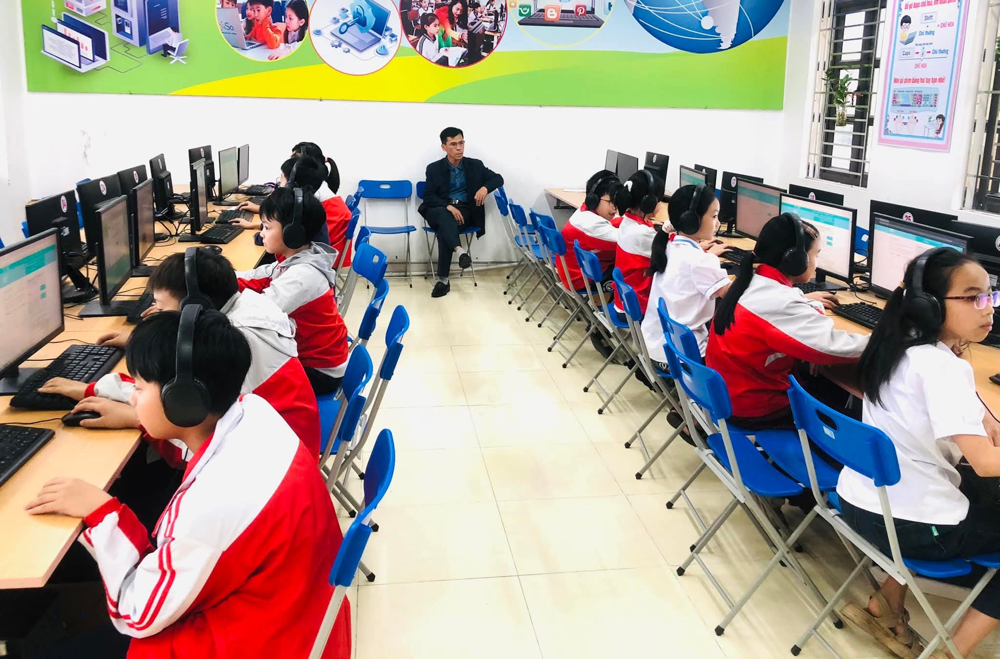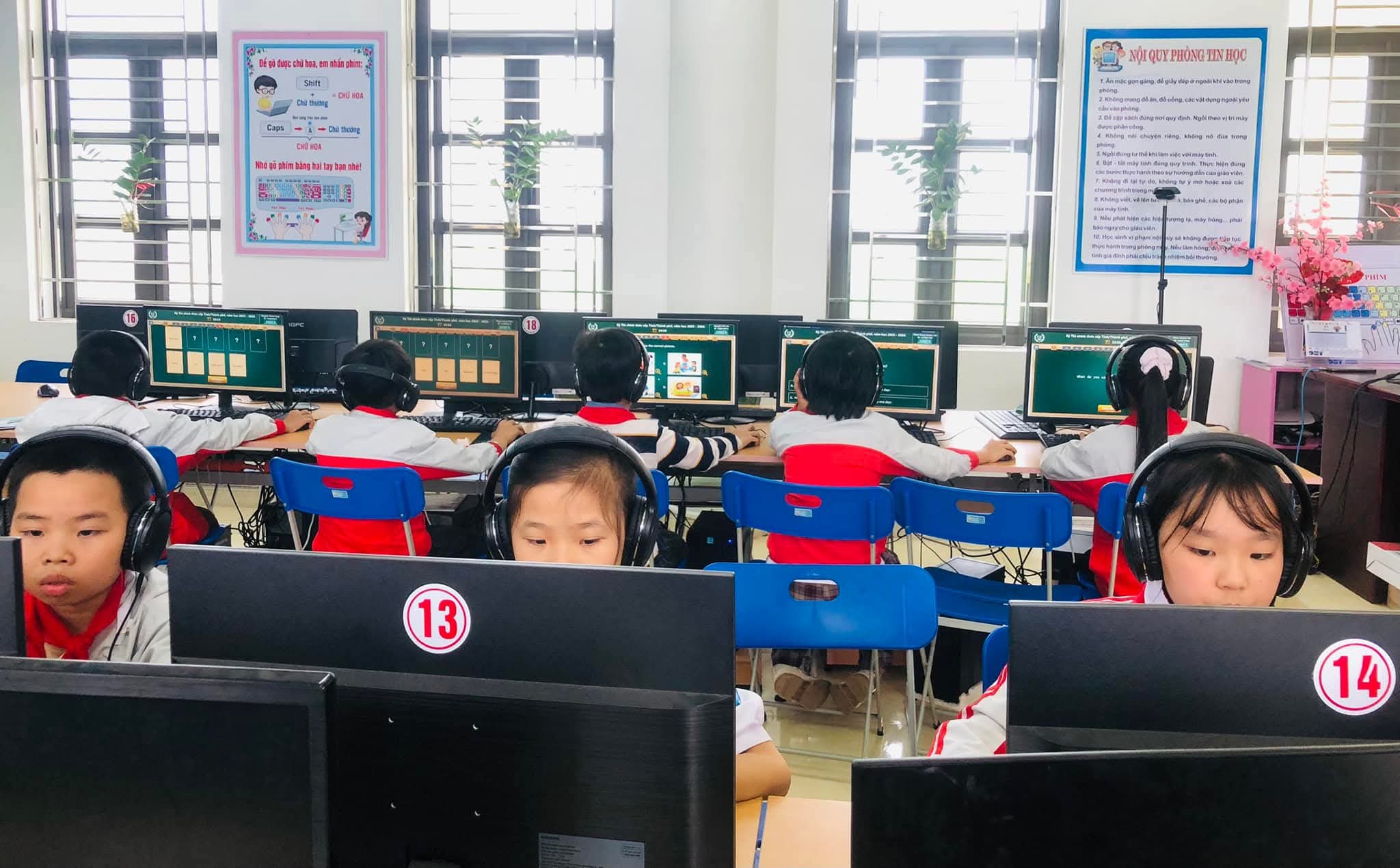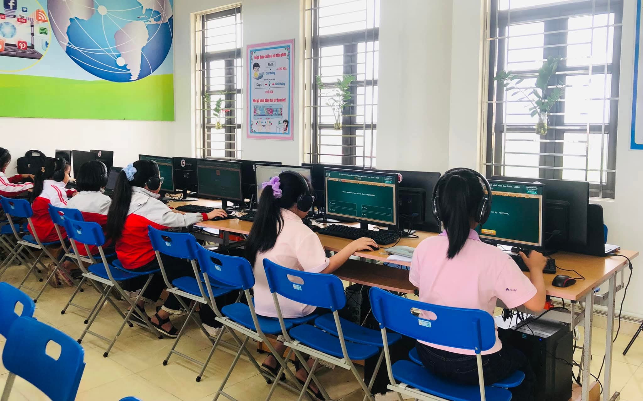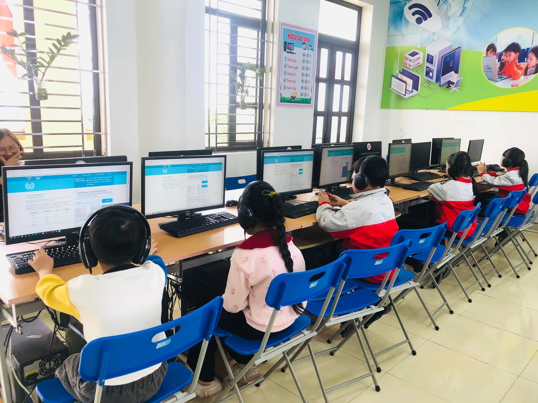 Chiều 09/03/2026, nắng xuân như rạng rỡ hơn tại các phòng máy của Trường Tiểu học Xuân Ninh. Không gian yên tĩnh lạ thường, chỉ còn tiếng lách cách của bàn phím và những ánh mắt hồn nhiên nhưng đầy quyết tâm đang dõi theo từng câu hỏi Tiếng Anh trên màn hình máy tính. Đó là khoảnh khắc 37 “đại sứ nhỏ” của chúng ta bước vào ca thi số 5 – nấc thang quan trọng nhất của kỳ thi IOE cấp Tỉnh năm học 205-2026.