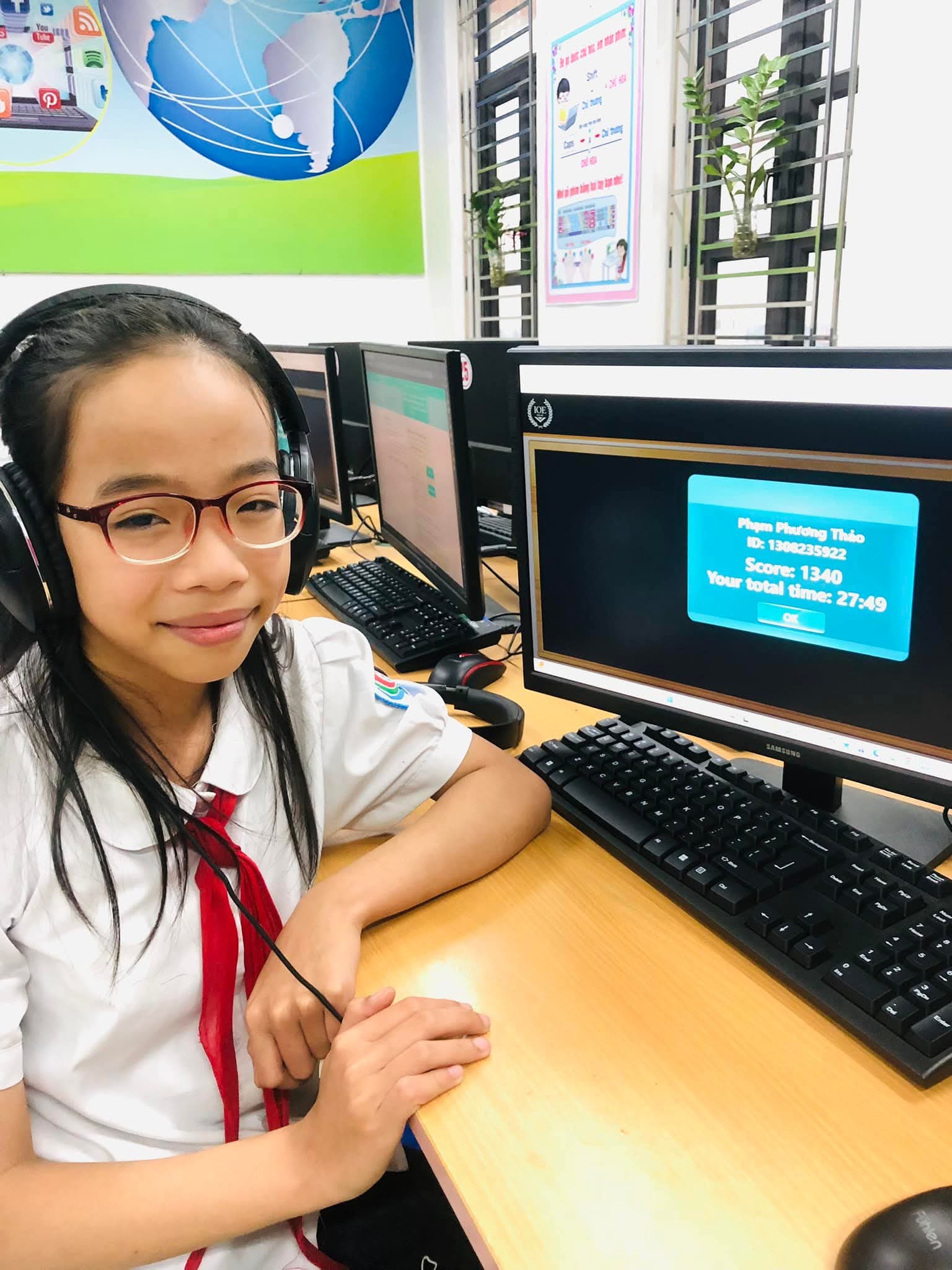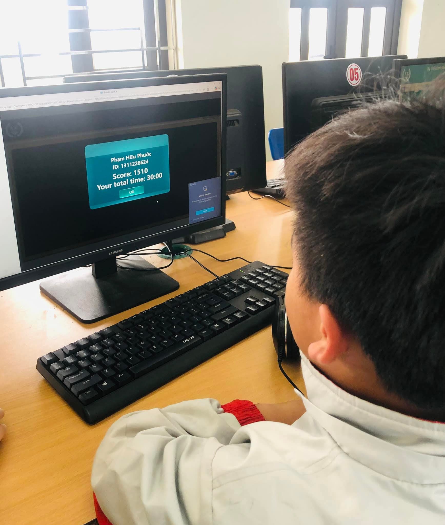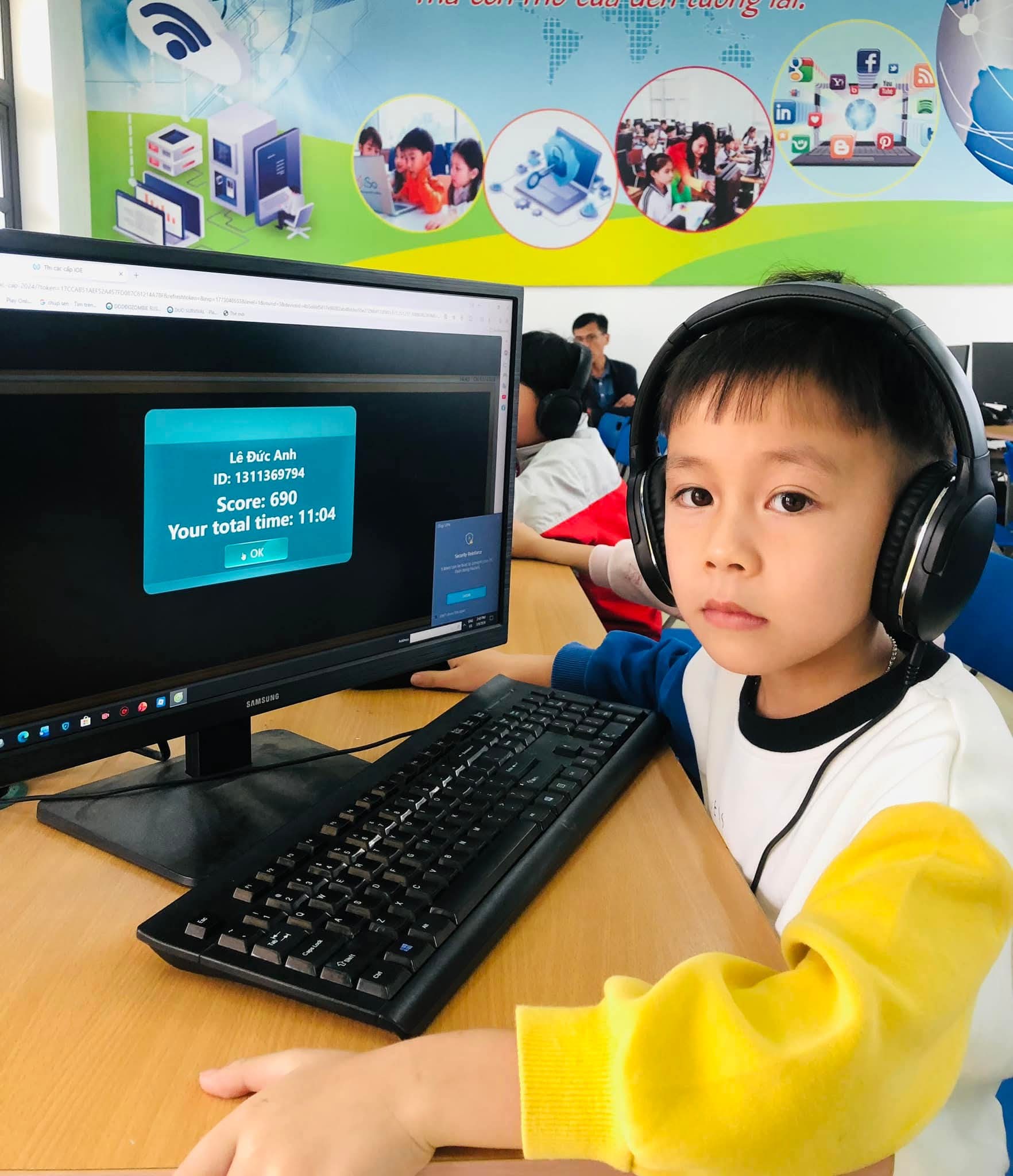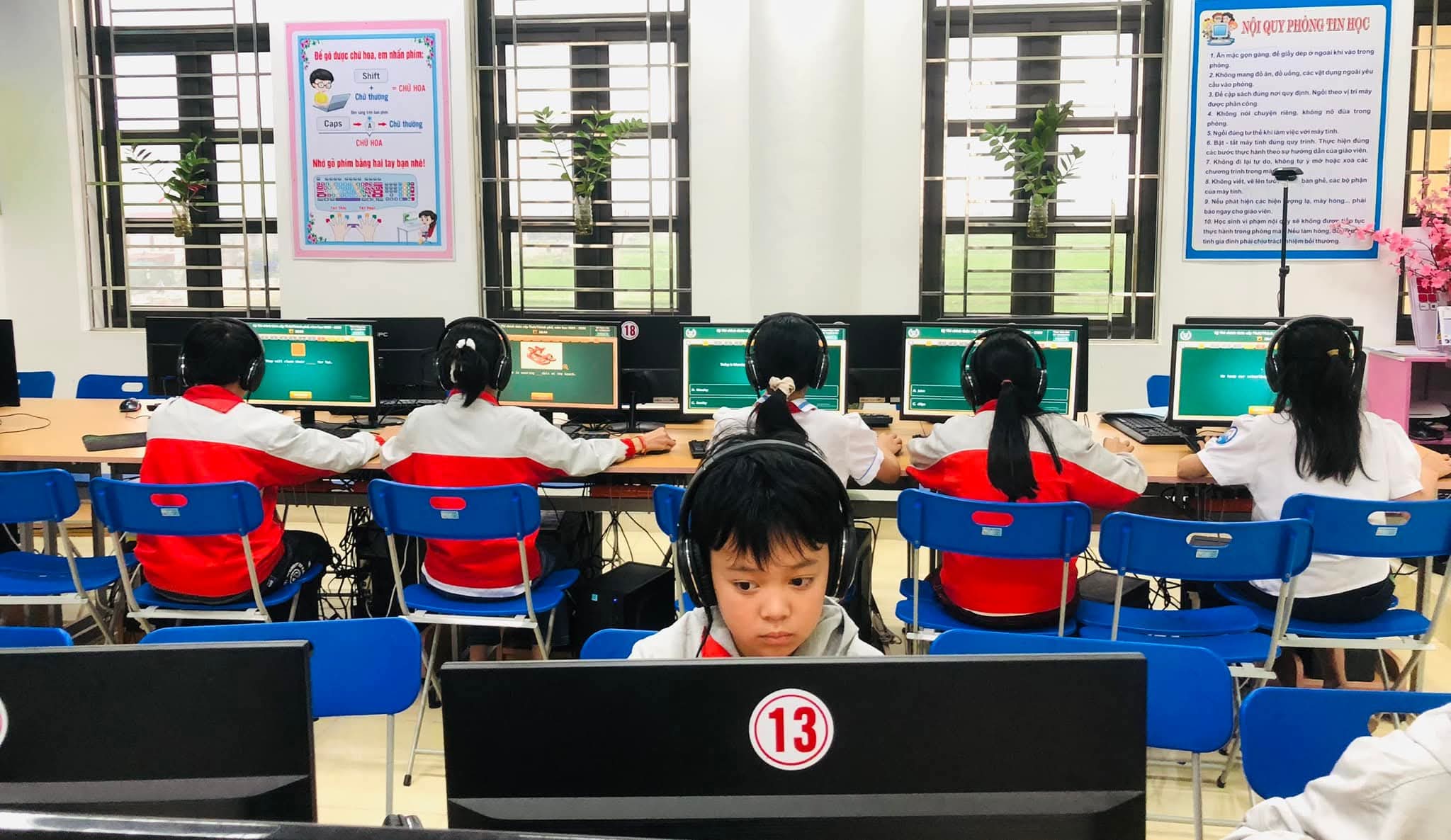 Chiều 09/03/2026, nắng xuân như rạng rỡ hơn tại các phòng máy của Trường Tiểu học Xuân Ninh. Không gian yên tĩnh lạ thường, chỉ còn tiếng lách cách của bàn phím và những ánh mắt hồn nhiên nhưng đầy quyết tâm đang dõi theo từng câu hỏi Tiếng Anh trên màn hình máy tính. Đó là khoảnh khắc 37 “đại sứ nhỏ” của chúng ta bước vào ca thi số 5 – nấc thang quan trọng nhất của kỳ thi IOE cấp Tỉnh năm học 205-2026.